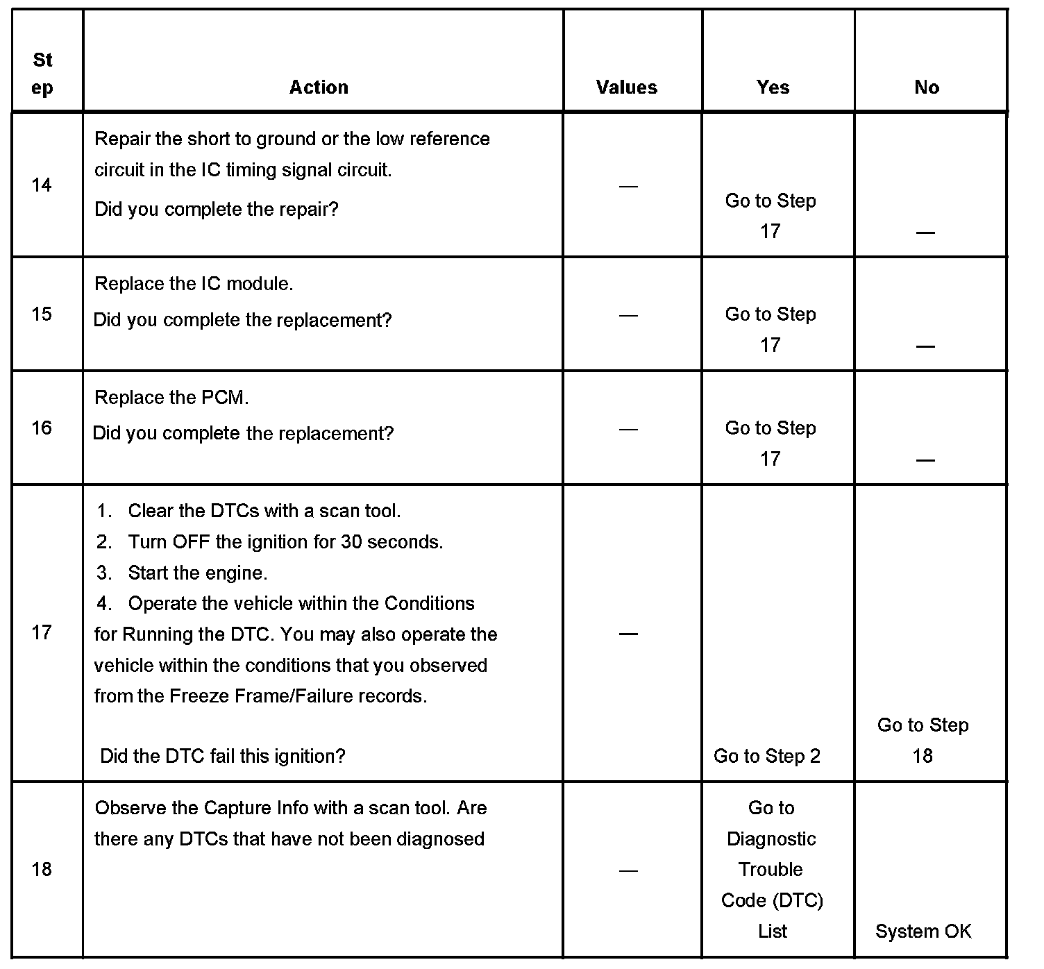 - A current DTC, Last Test Failed, clears when the diagnostic runs and passes.
