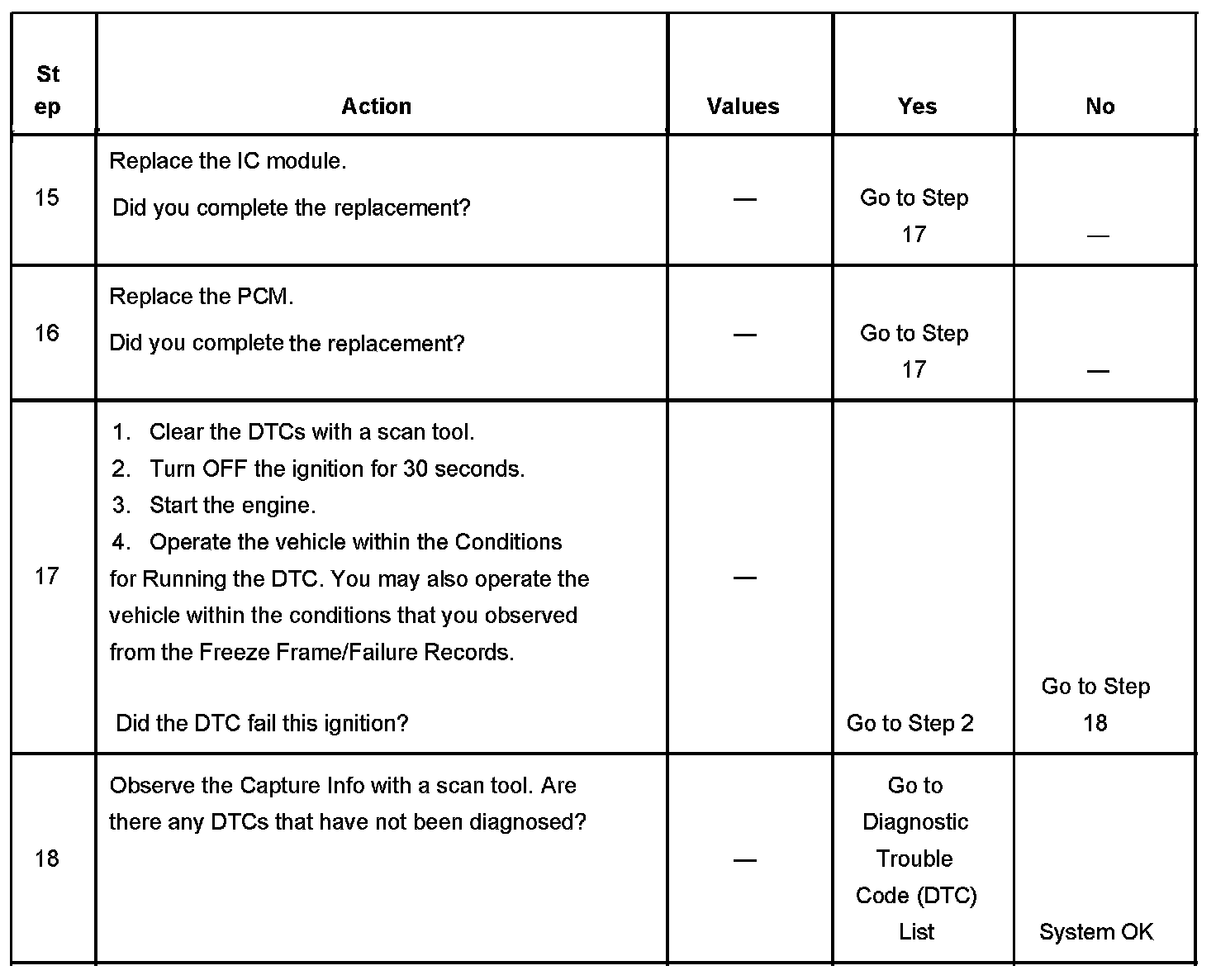 - A current DTC, Last Test Failed, clears when the diagnostic runs and passes.