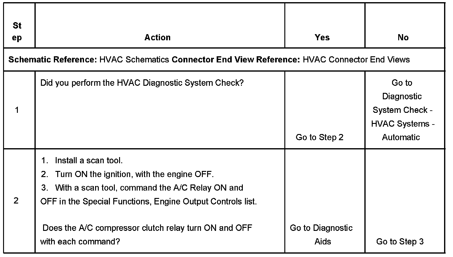 2. Listen for an audible click when the A/C compressor clutch relay operates. Command both the ON and OFF states. Repeat the commands as necessary.