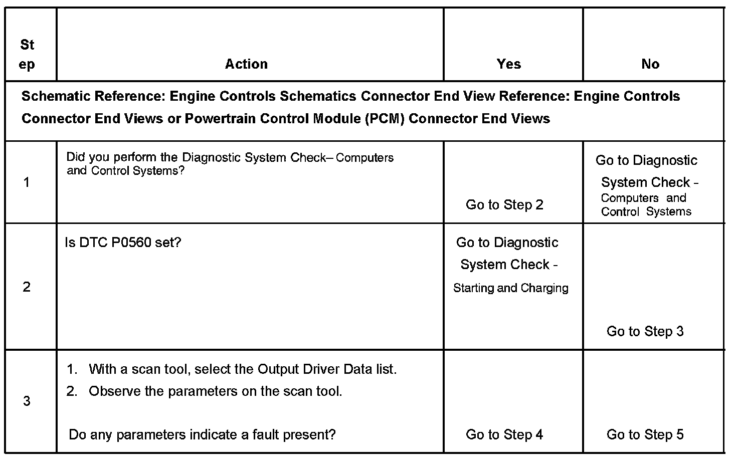 CIRCUIT DESCRIPTIONThe output driver modules (ODM) are chips that are inside the powertrain control module (PCM). The ODMs provide grounded outputs that control devices. Each output has an internal feedback circuit that connects to the PCM microprocessor. The ODM 1 determines if the voltage or the current may cause damage to the PCM. The PCM monitors voltage through the ignition 1 input. Any incorrect current that is on a circuit to the ODM will cause the ODM to report this DTC.