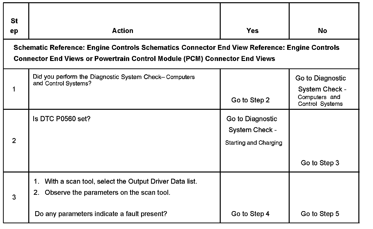 CIRCUIT DESCRIPTIONThe output driver modules (ODM) are chips that are inside the powertrain control module (PCM). The ODMs provide grounded outputs that control devices. Each output has an internal feedback circuit that connects to the PCM microprocessor. The ODM 3 determines if the voltage or the current may cause damage to the PCM. The PCM monitors voltage through the ignition 1 input. Any incorrect current that is on a circuit to the ODM will cause the ODM to report this DTC.