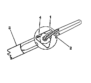 4. Pull down on the free end of the sunshade until a rectangular slot (3) appears between the flange and the retainer bezel. Maintain this pressure for the next two steps.
