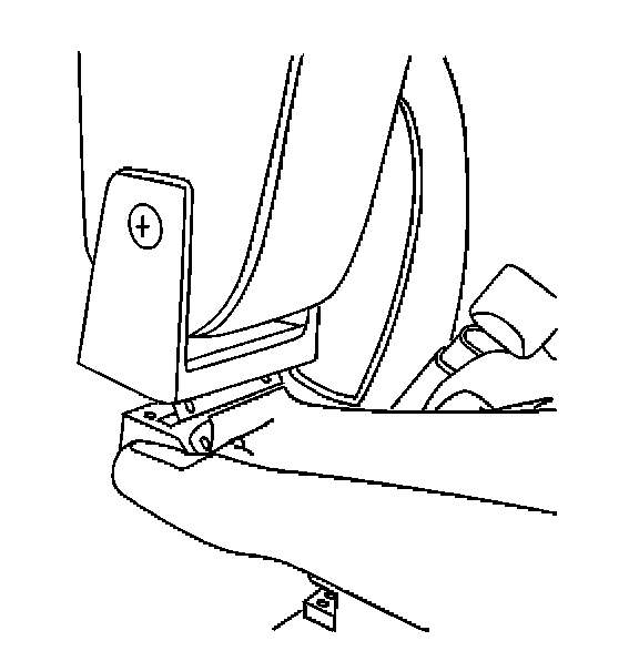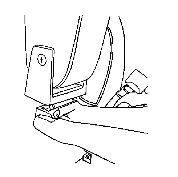 1. Using J 38778 remove the push-in retainers (1) from the front seat armrest base cover.