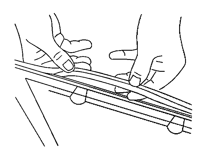 3. Wipe the perimeter of the sunroof window panel frame area with a clean, dampened cloth using window cleaner GM P/N 1050427 (Canadian P/N 992727), or isopropyl alcohol in order to clean the surface of the perimeter of the sunroof window panel frame. Allow to air dry.