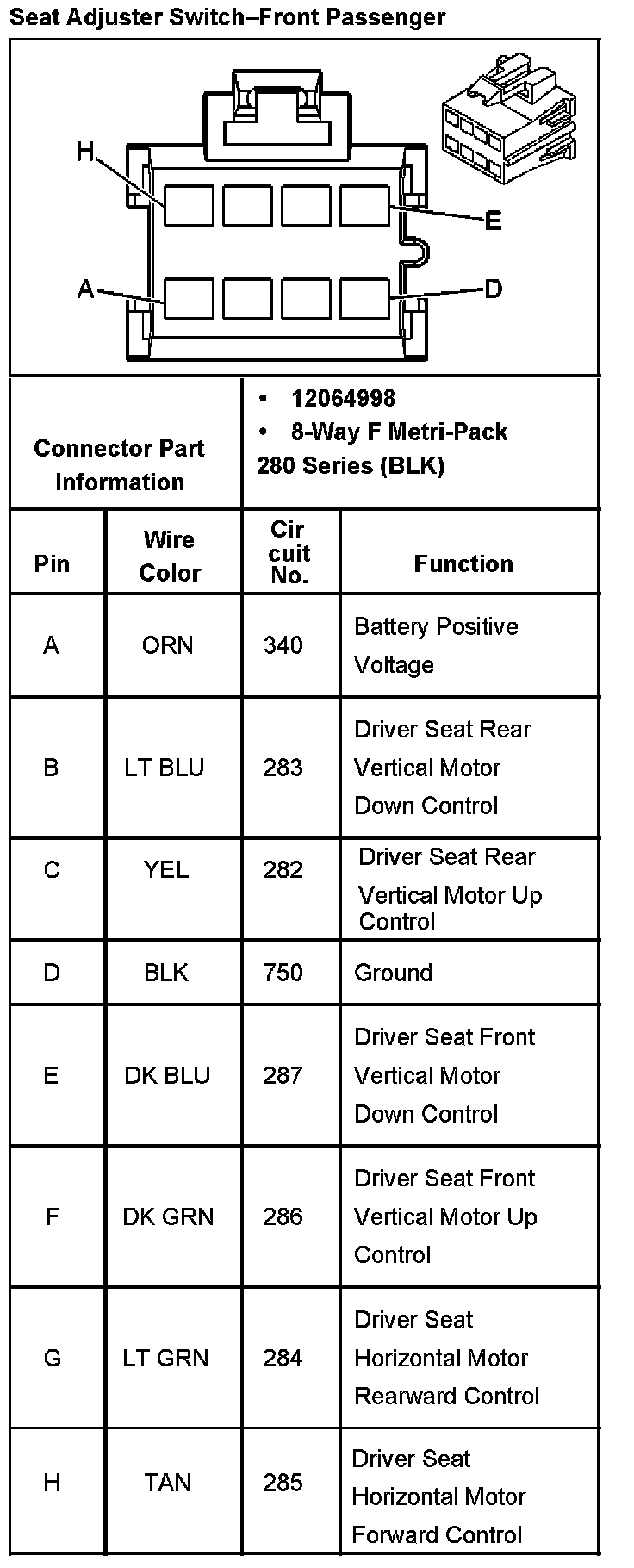 Seat Adjuster Switch-Front Passenger: