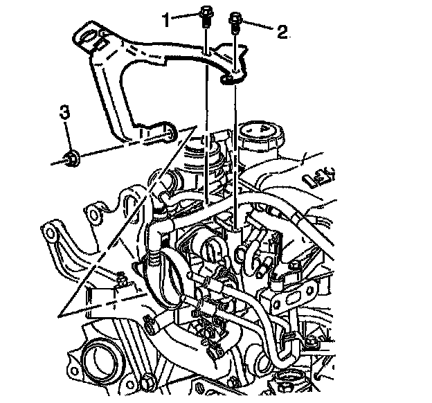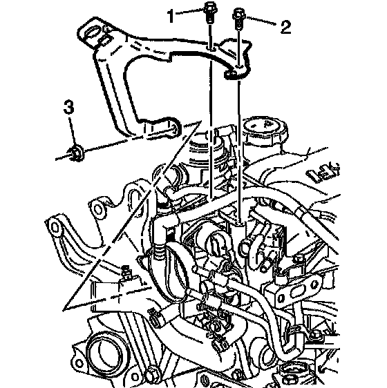 Intake Manifold Cleaning and Inspection - Upper1. Remove the accelerator control cable bracket bolts (1, 2) and the nut (3).