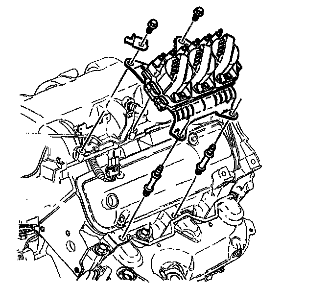 2. Apply sealer GM P/N 12346286, (Canadian P/N 10953472) or the equivalent to the notches where the cylinder head and intake manifold meet.