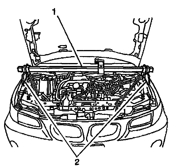 5. Install the J 36462-A (1) to the cross bar (2).
