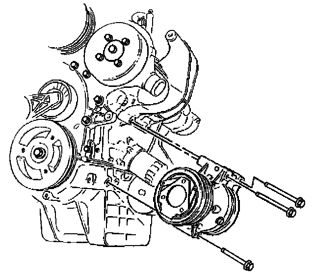 12. Remove the lower A/C compressor mounting bolts.