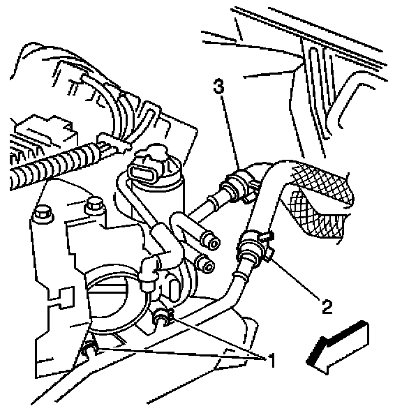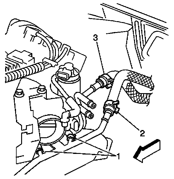 4. Use J 38185 in order to reposition the heater hose inlet clamp.