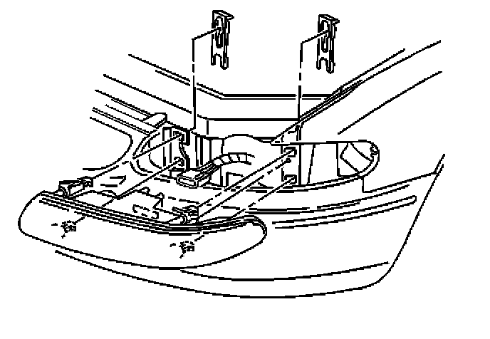 6. Position the headlamp mounting tabs to the slots in the upper fascia support and the fender reinforcement.