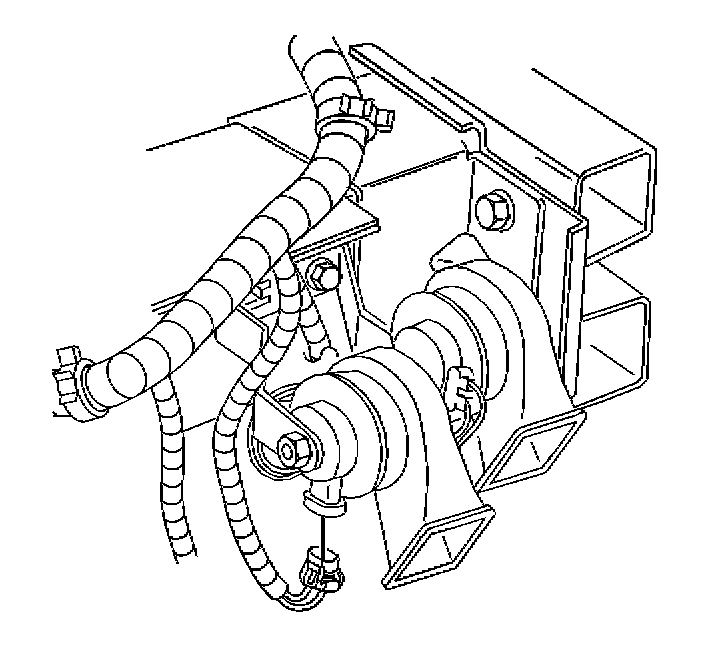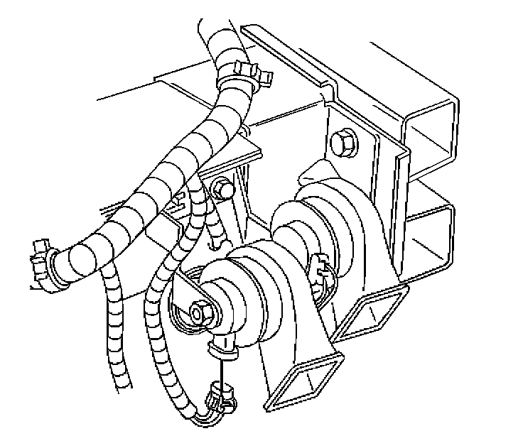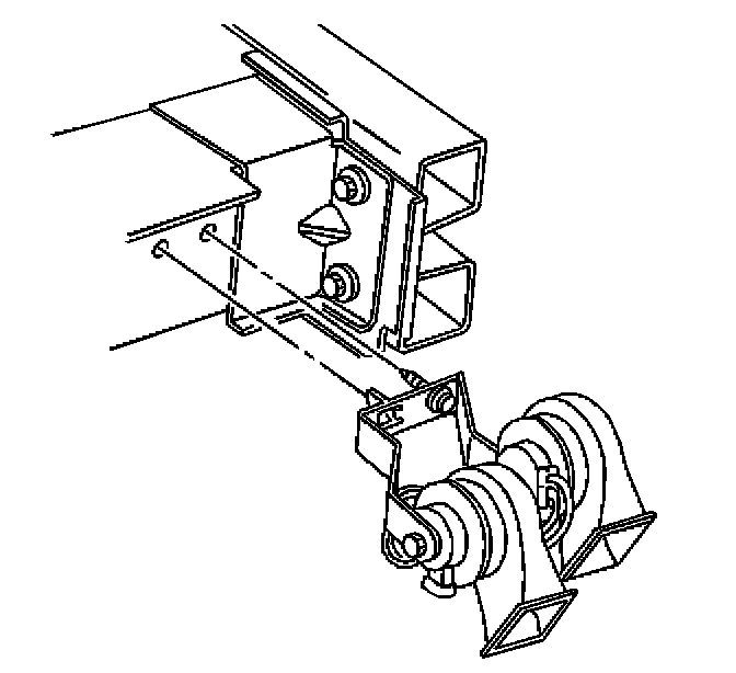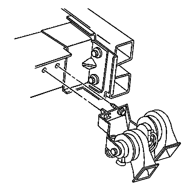 1. Position the horn assembly to the frame rail extension. Insert the horn anti-rotation tab into the slot on the frame rail.