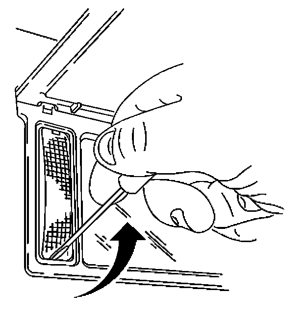 2. Insert a small flat-bladed tool at the lower edge of the lamp lens towards the middle of the sunshade. Lift the lens enough to clear the plastic housing.