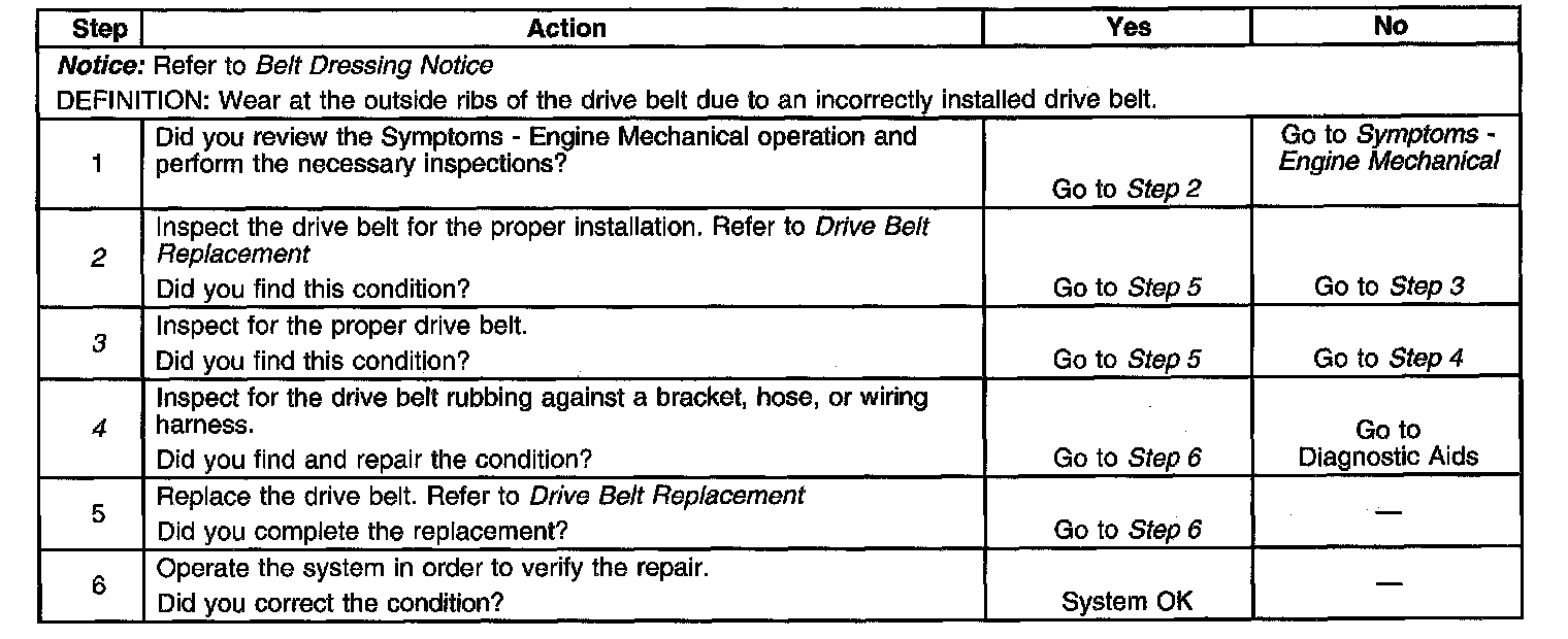 Drive Belt Excessive Wear DiagnosisSteps 1-6: