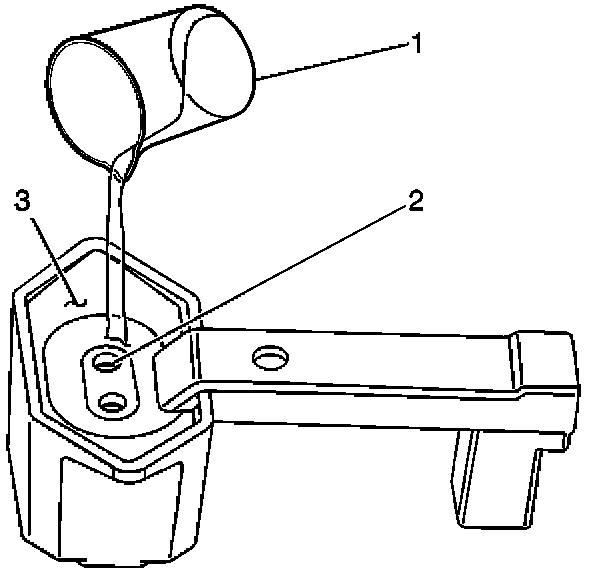 9. Pour the fuel sample from the beaker (1) into the J 44175 , until the level of the fuel is at the top of each fuel test port (2).