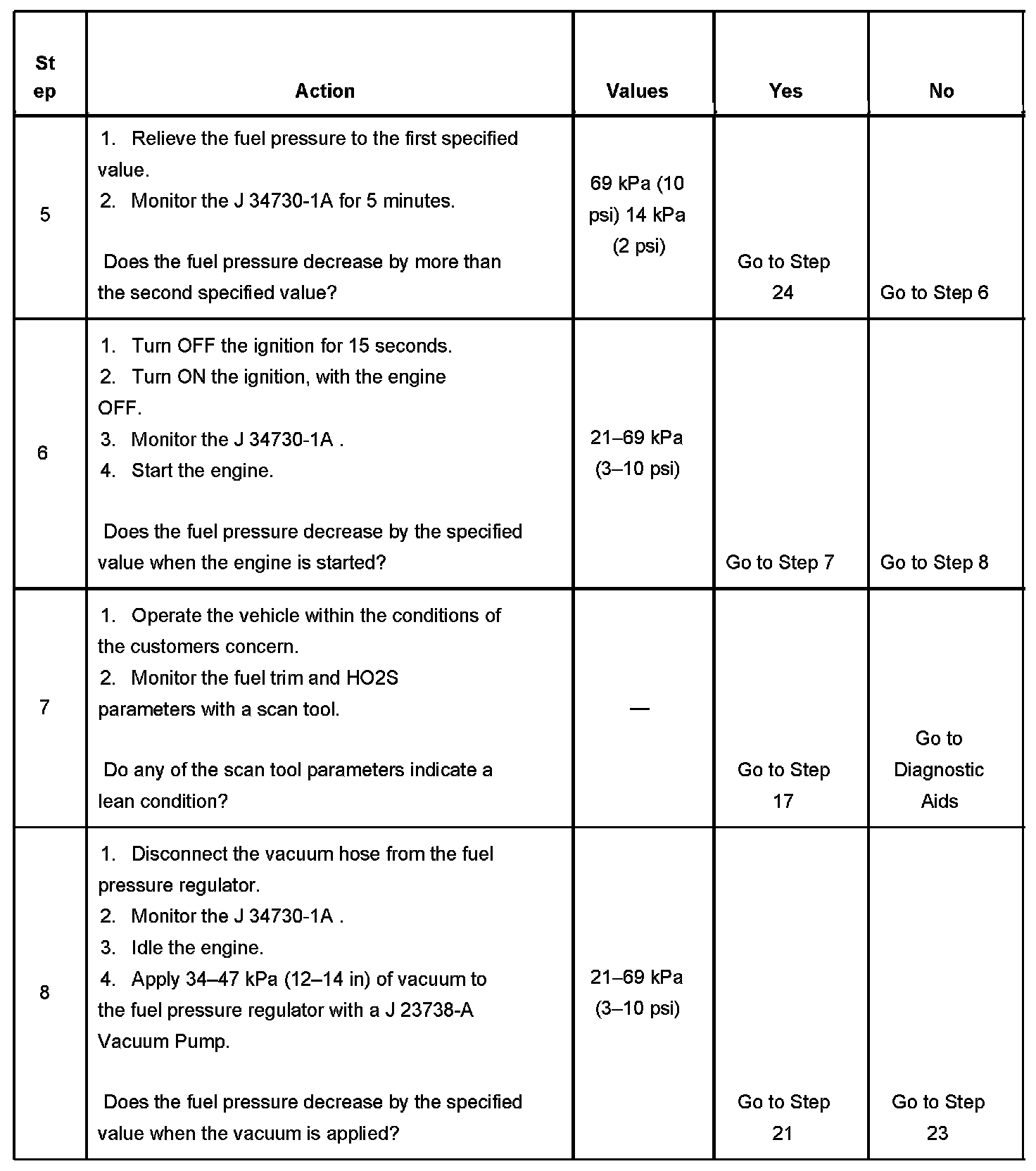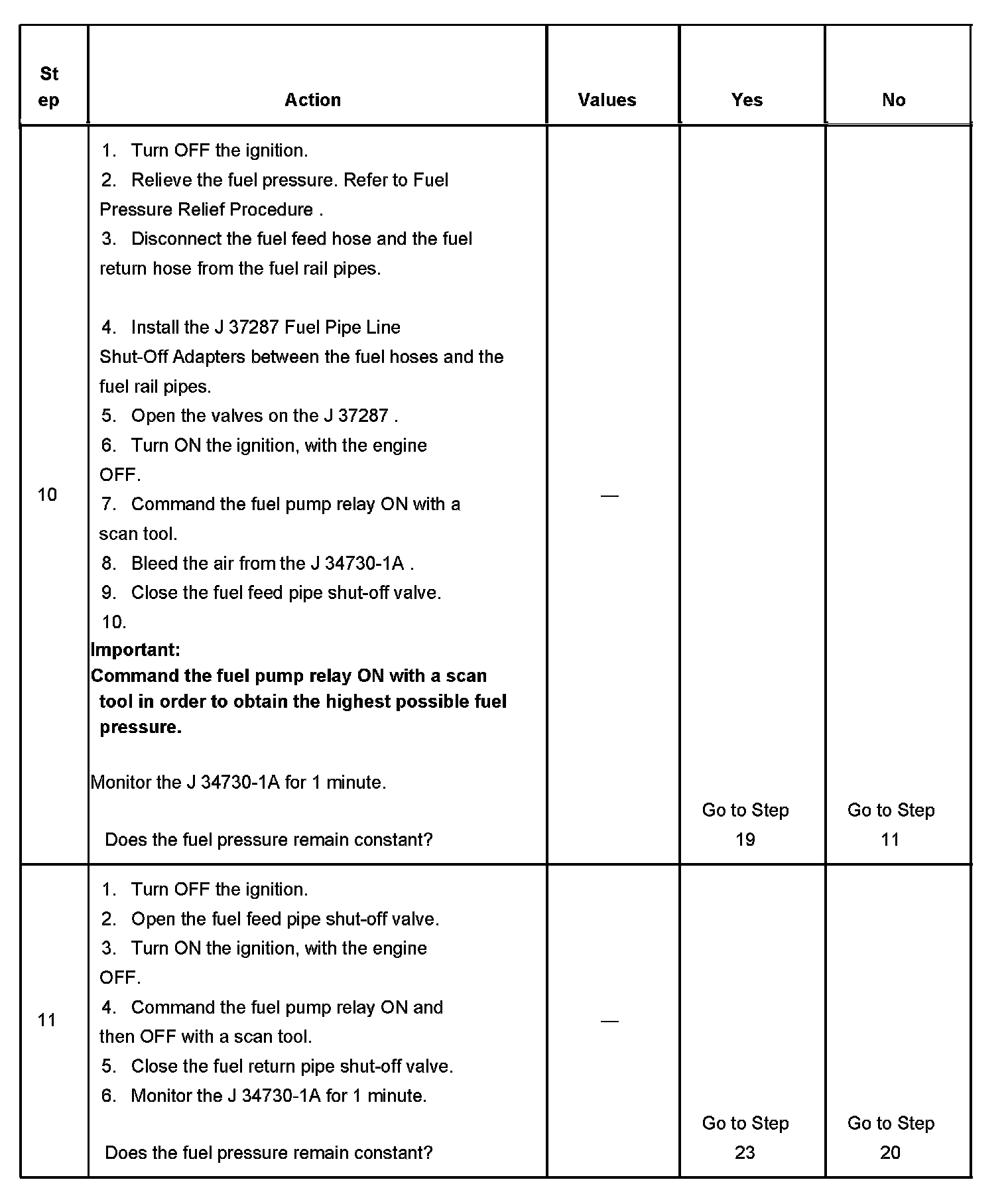 11. This step tests for a leaking fuel injector, or fuel pressure regulator. If the fuel pressure remains constant during this test, the fuel injectors are not leaking fuel.