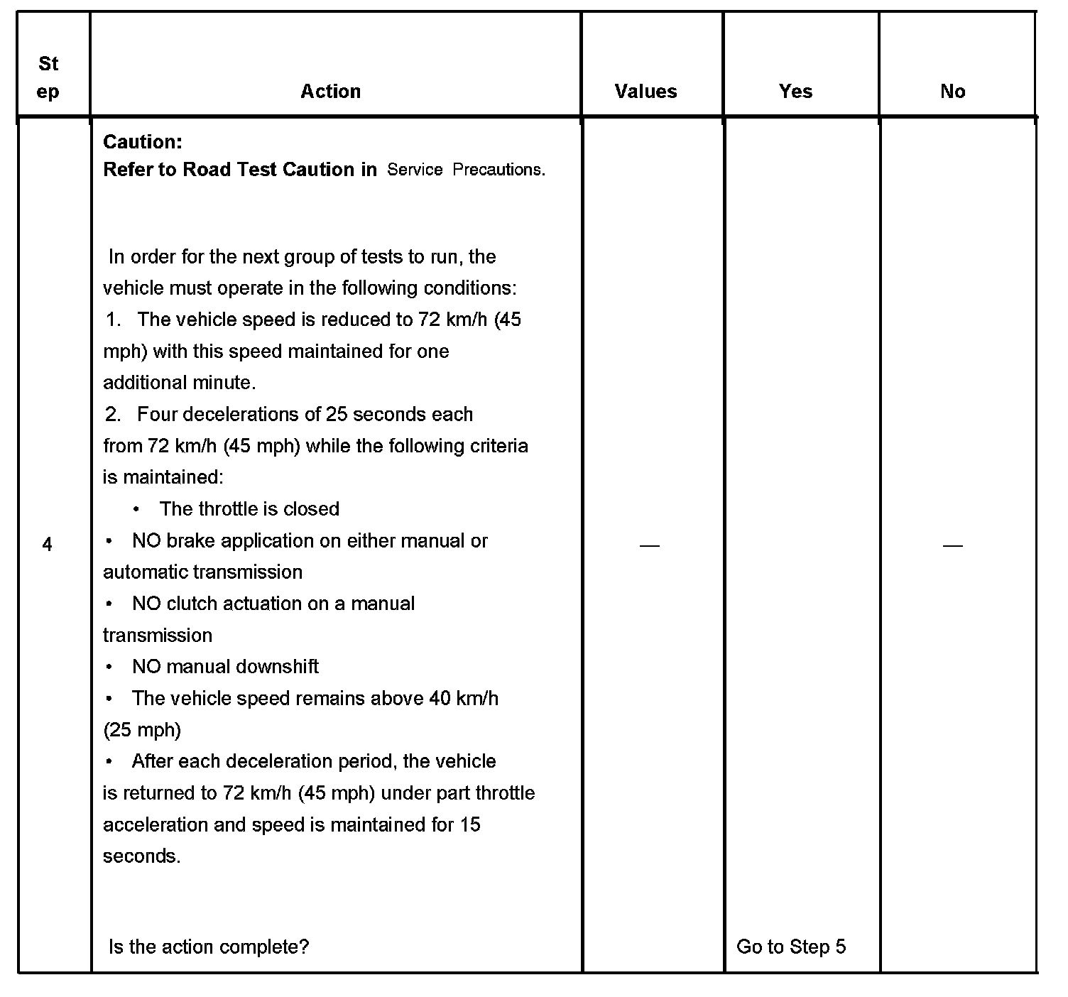 4. This step runs the exhaust gas recirculation (EGR) Tests. The EGR Tests are run during a gradual deceleration with a closed throttle. The vehicle speed is required in order to maintain a high, steady manifold absolute pressure (MAP) signal.