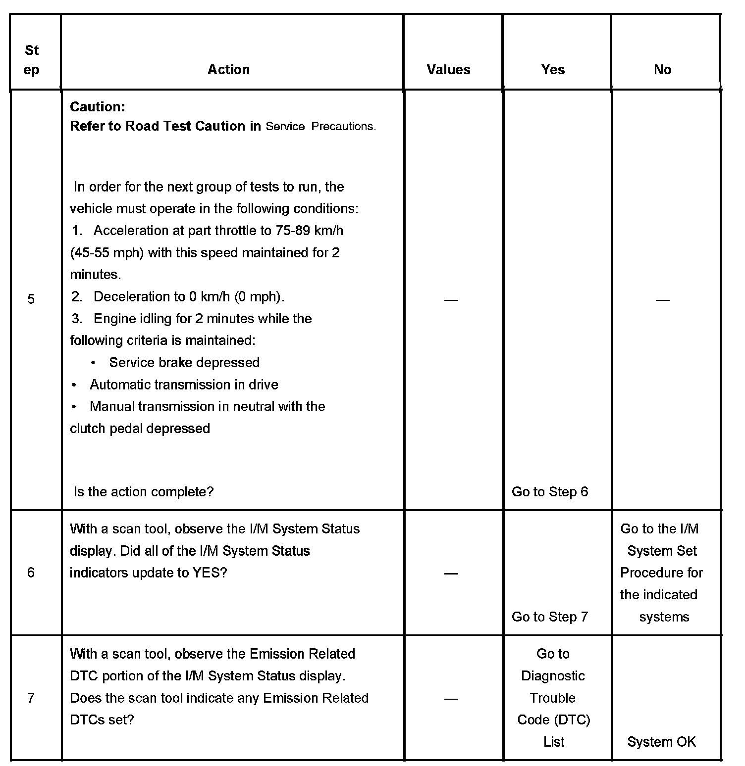 This procedure satisfies the enable criteria necessary to execute all of the I/M readiness diagnostics, and complete the trips for those particular diagnostics. When all diagnostic tests are completed, the I/M System Status indicators are set to YES. Perform this test when more than one or all of the I/M System Status indicators are set to NO.