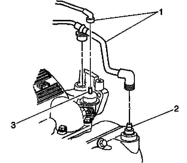 1. Disconnect the vacuum hoses (1) from the fuel pressure regulator (3) and the Positive Crankcase Ventilation (PCV) valve (2).