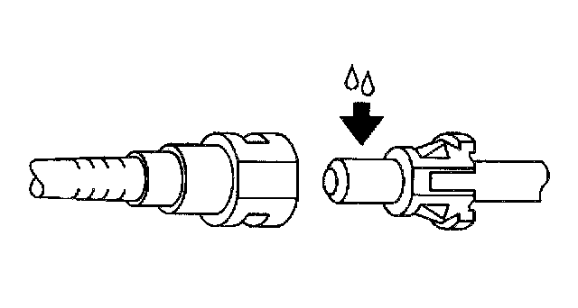 CAUTION: Always apply a few drops of clean engine oil to the male pipe ends before connecting the fuel pipe fittings in order to reduce the risk of fire and personal injury. This will ensure proper reconnection and prevent a possible fuel leak. During normal operation, the O-rings located in the female connector will swell and may prevent proper reconnection if not lubricated.