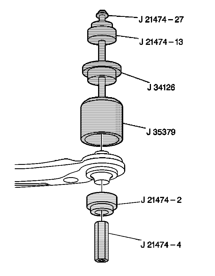 IMPORTANT: This procedure applies to the front control arm bushing replacement only. You must service the rear horizontal control arm bushing with the control arm. You cannot replace this bushing separately.