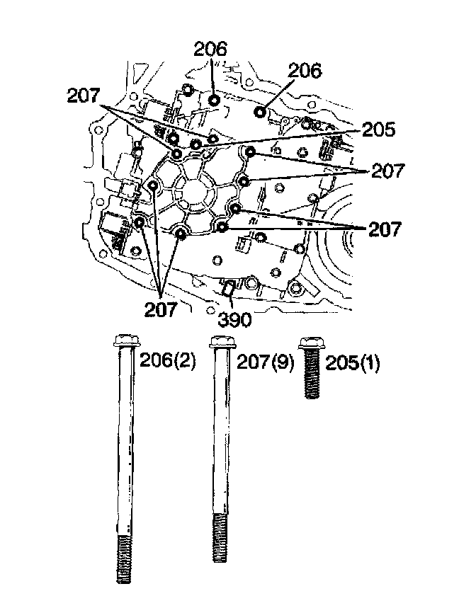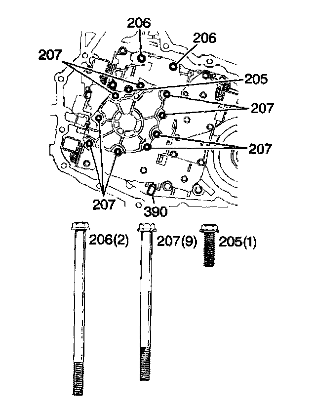 ^ Tighten the M6 X 1.0 X 85 bolts (207) to 12 Nm (106 inch lbs.).