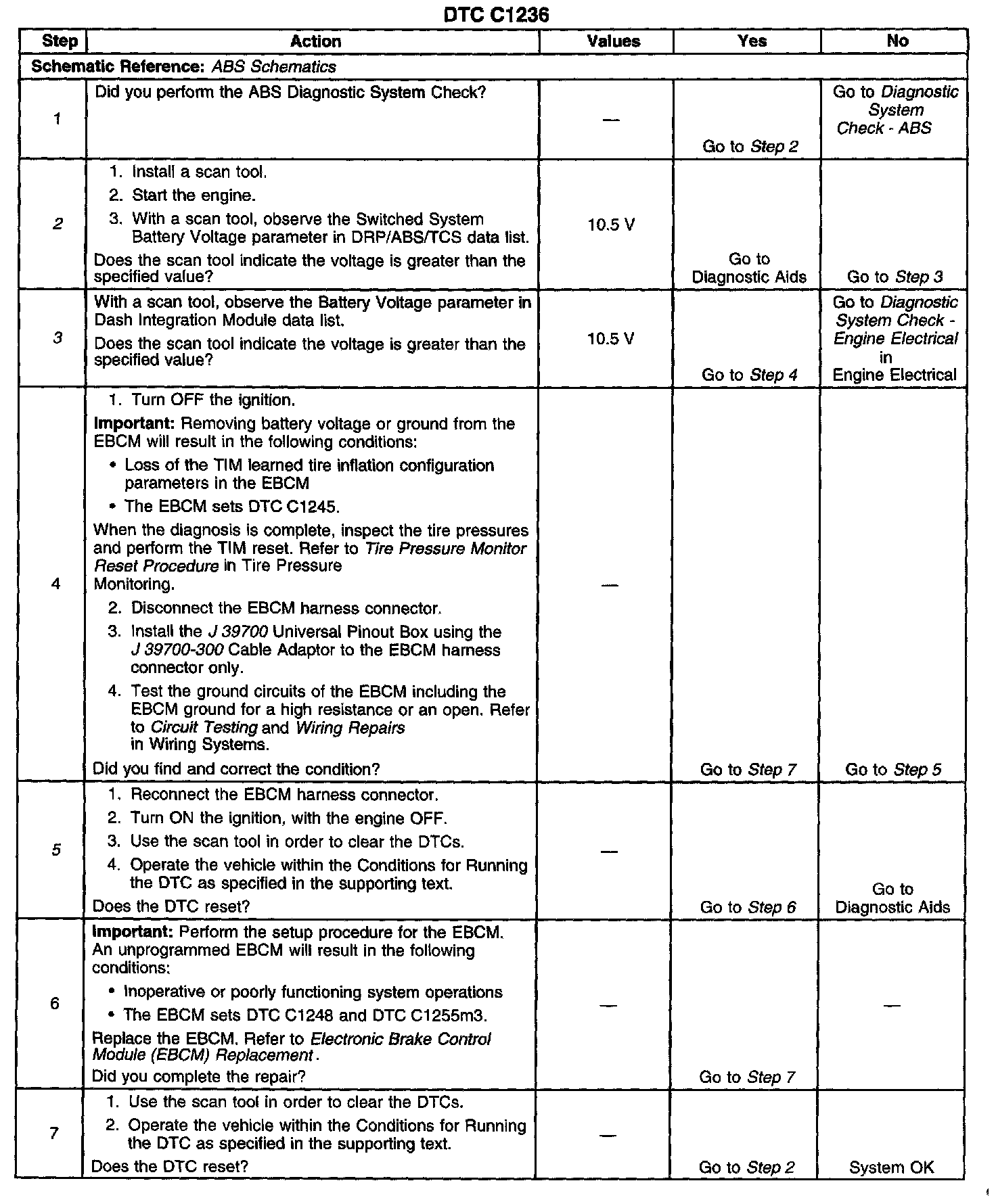 ^ The EBCM automatically clears the history DTC when a current DTC is not detected in 100 consecutive drive cycles.