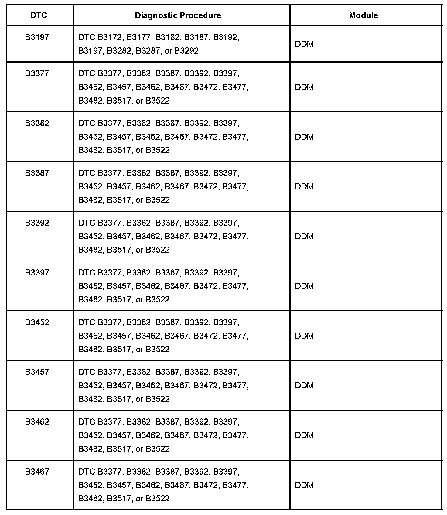 DTC B3197-B3467: