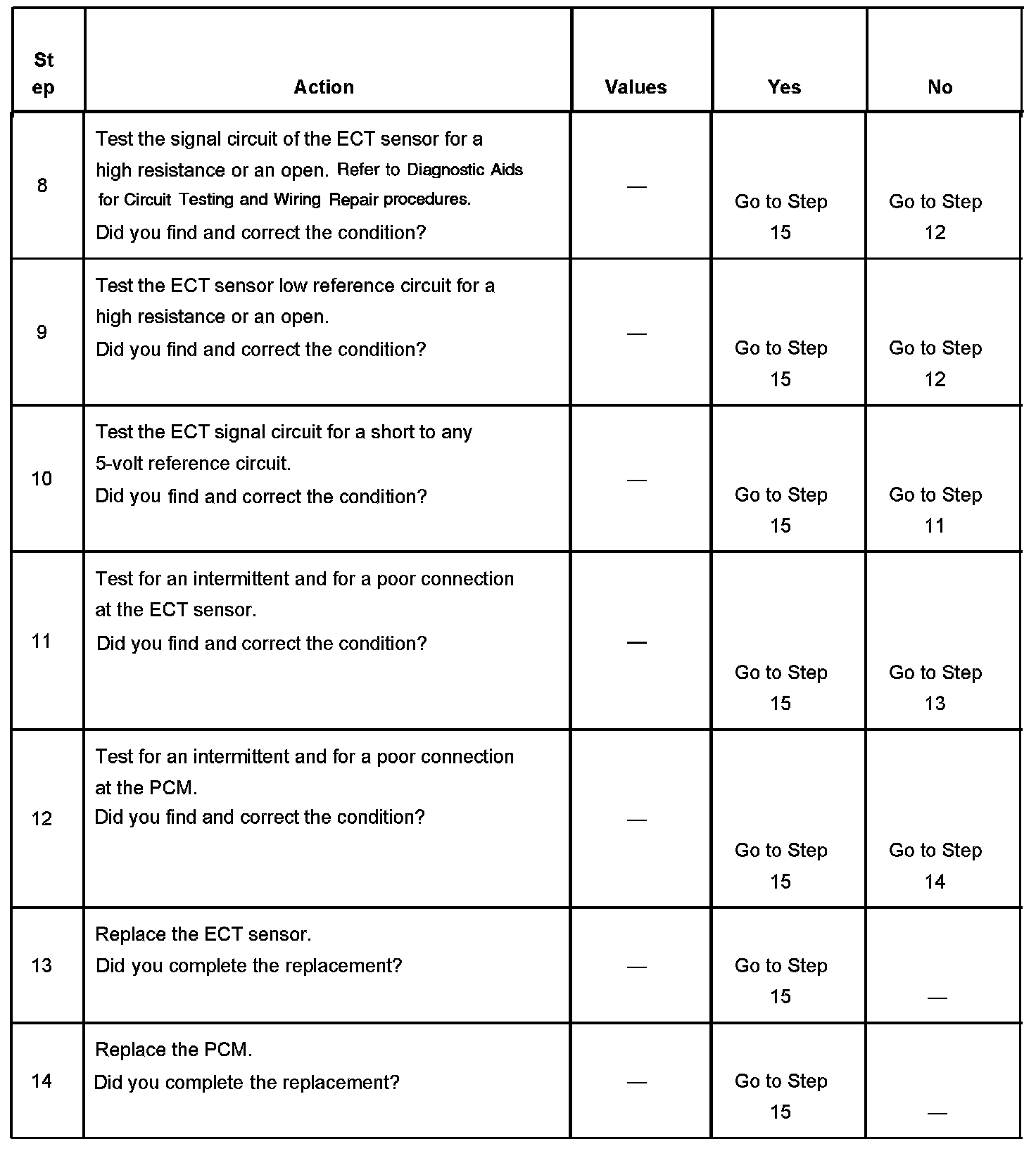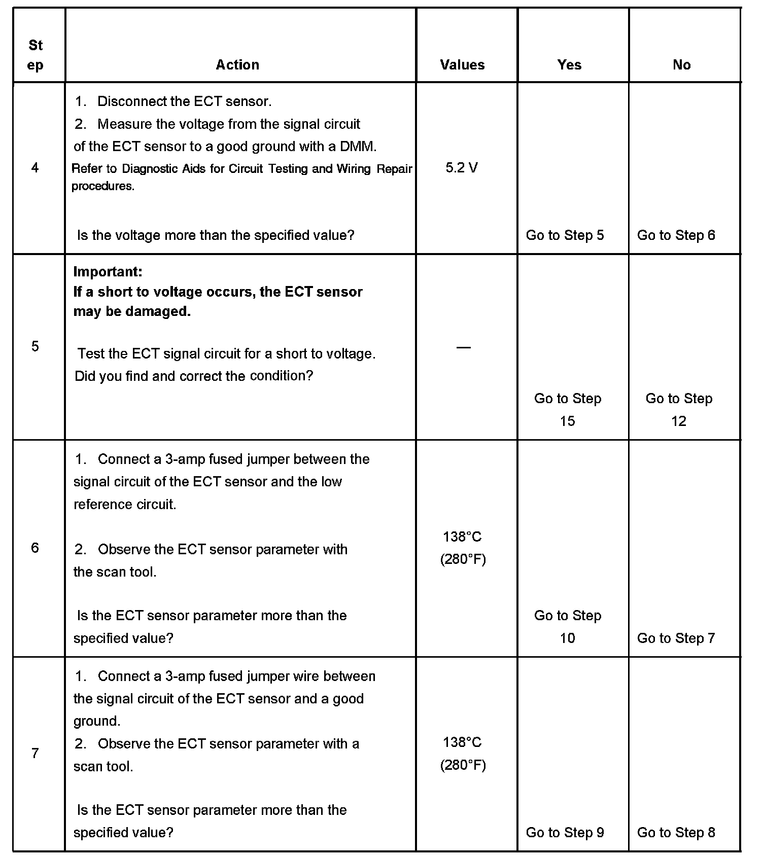 - Use the Temperature vs Resistance table in order to test the ECT sensor.