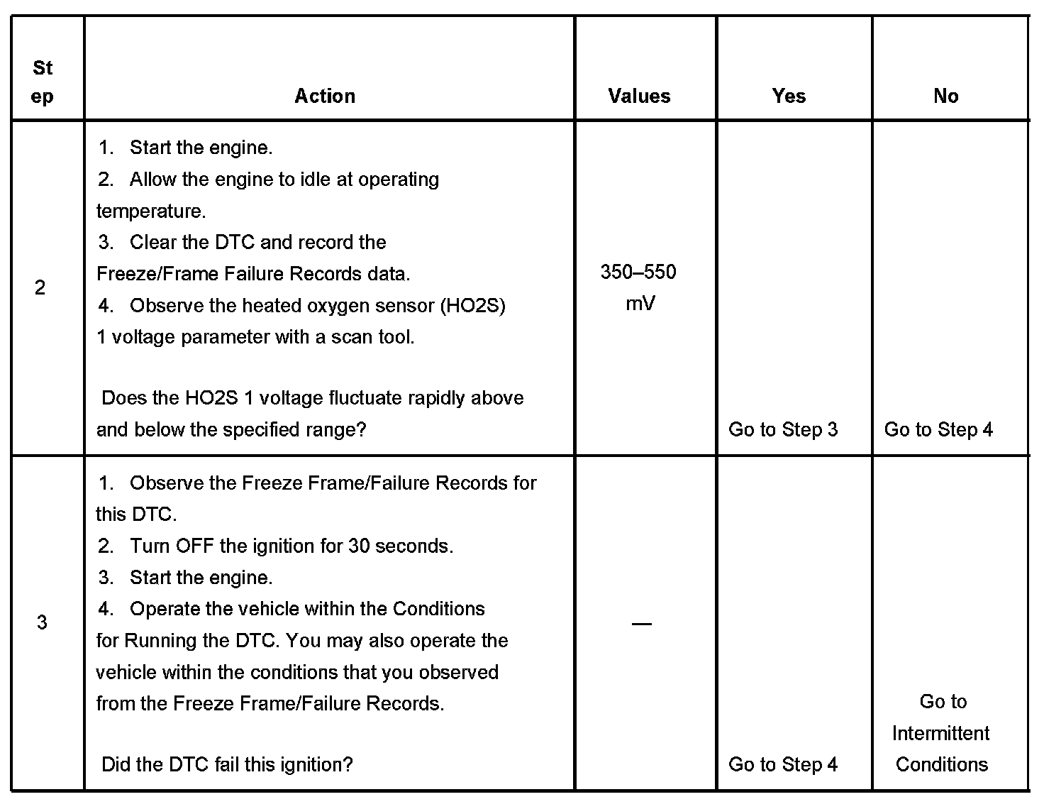 8. The conditions listed in the table may contribute to the failure of the HO2S. The conditions listed apply only to this type of failure.