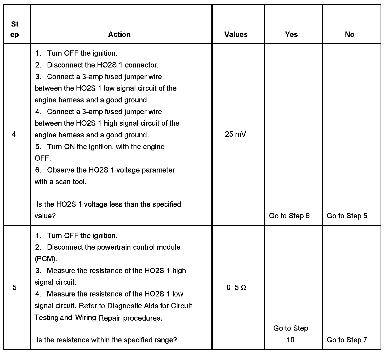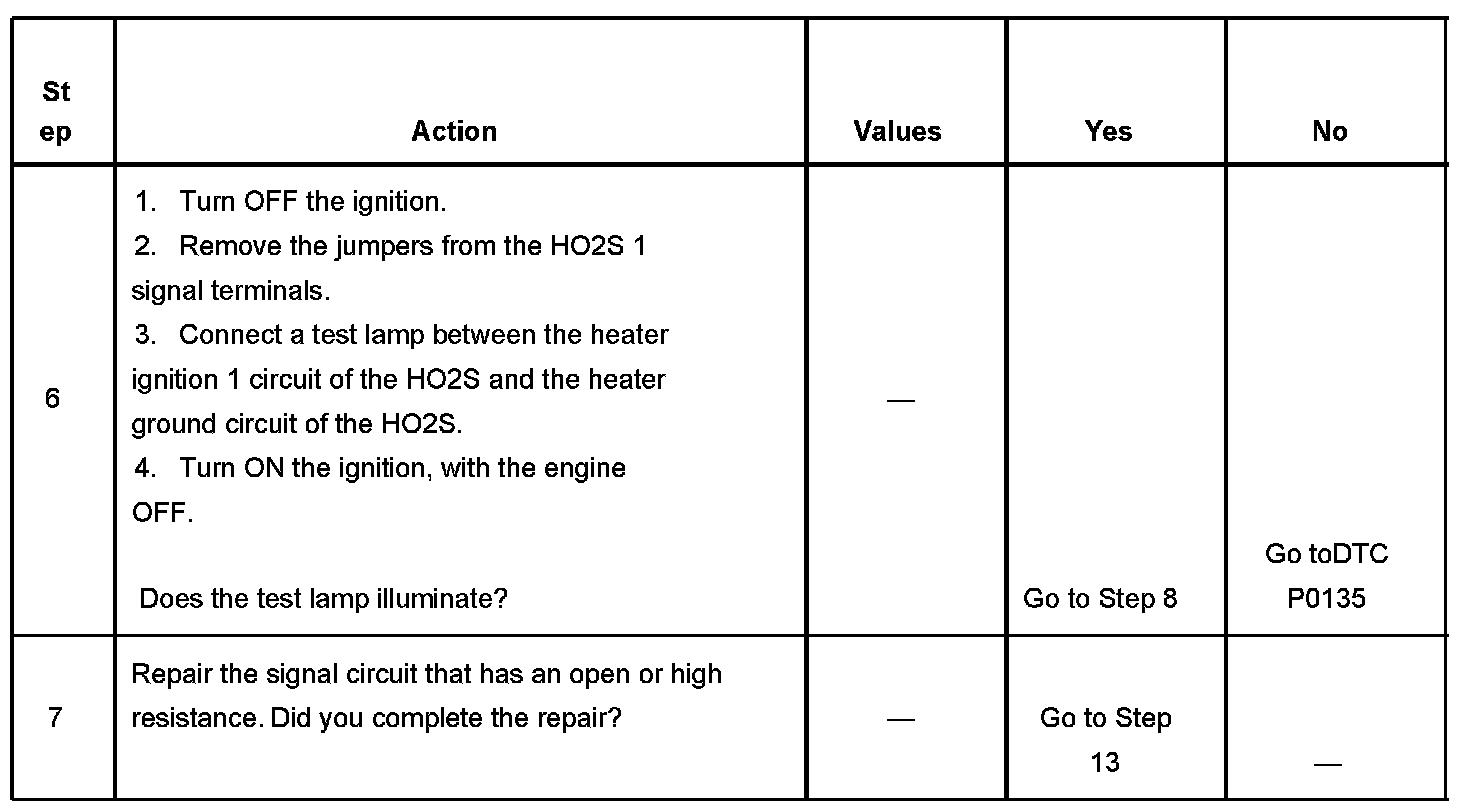 6. This step verifies that there are functional HO2S 1 heater power and ground circuits.