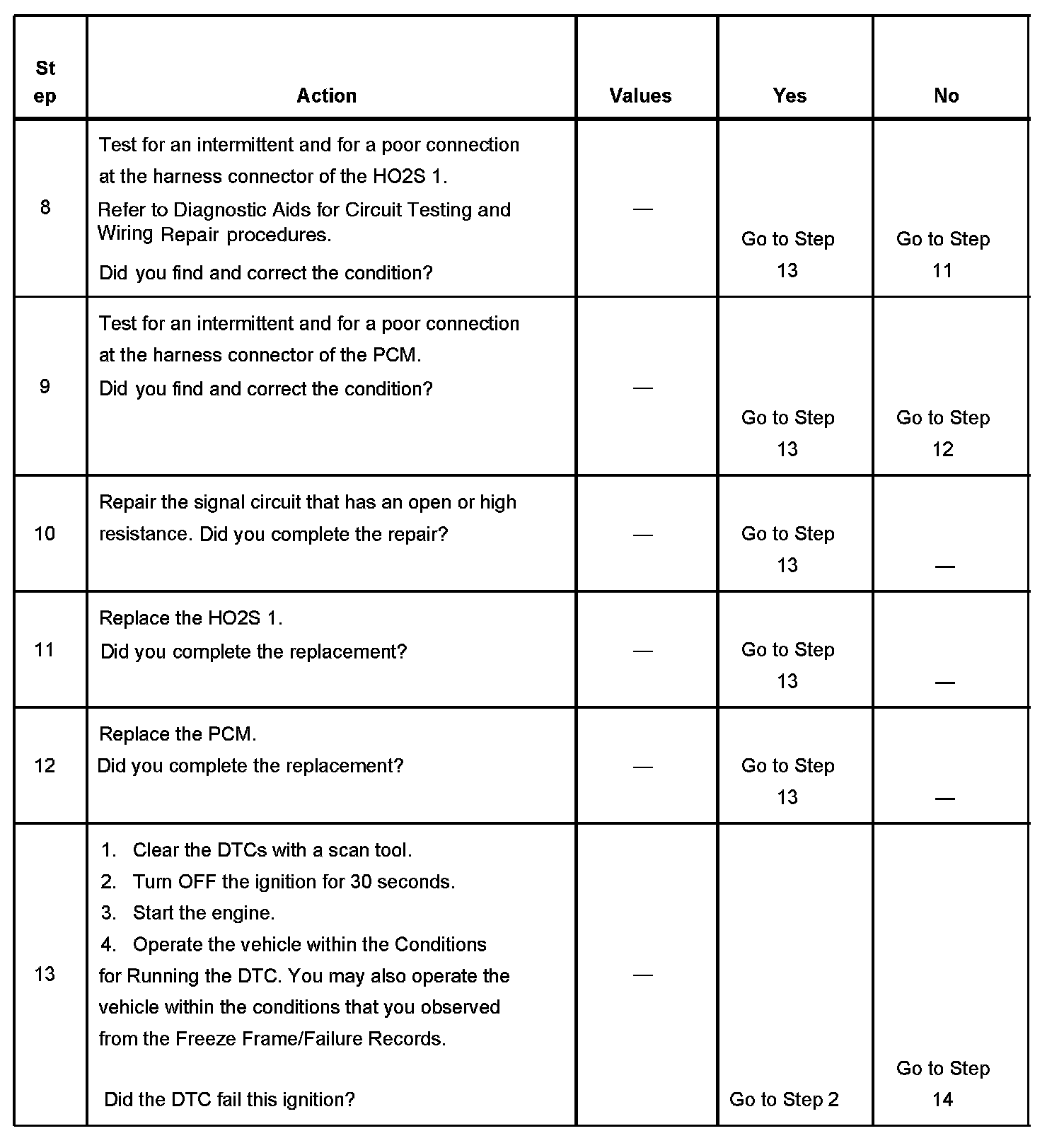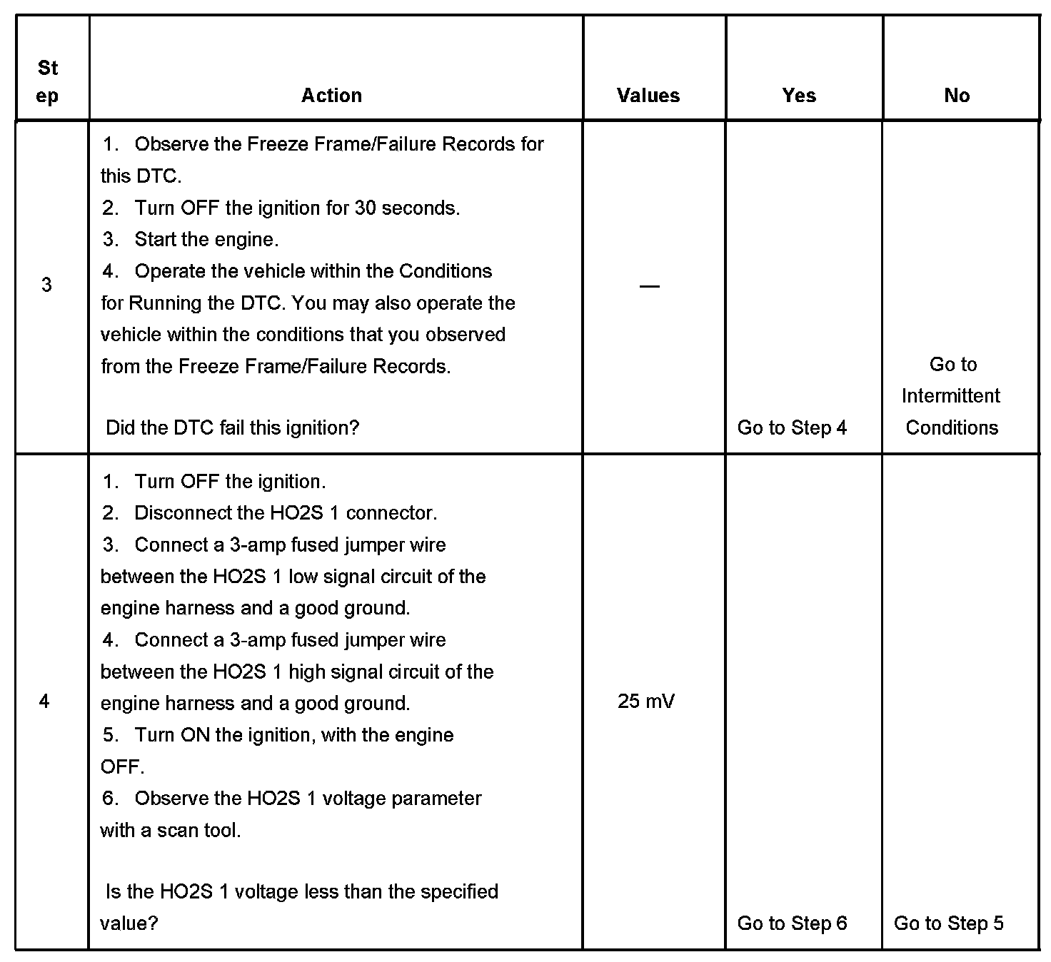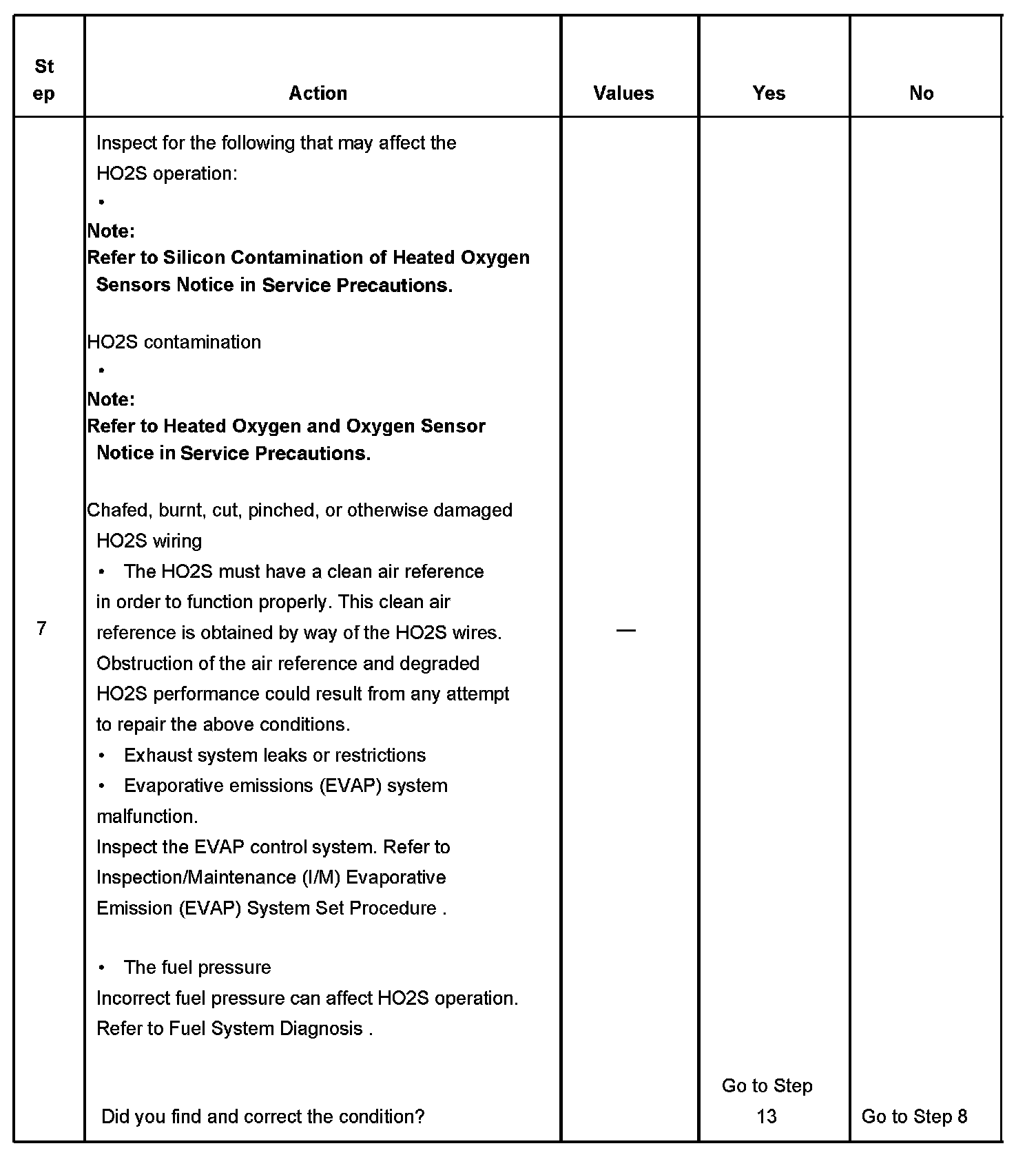 7. The conditions listed in the table may contribute to the failure of the HO2S. The conditions listed apply only to this type of failure.