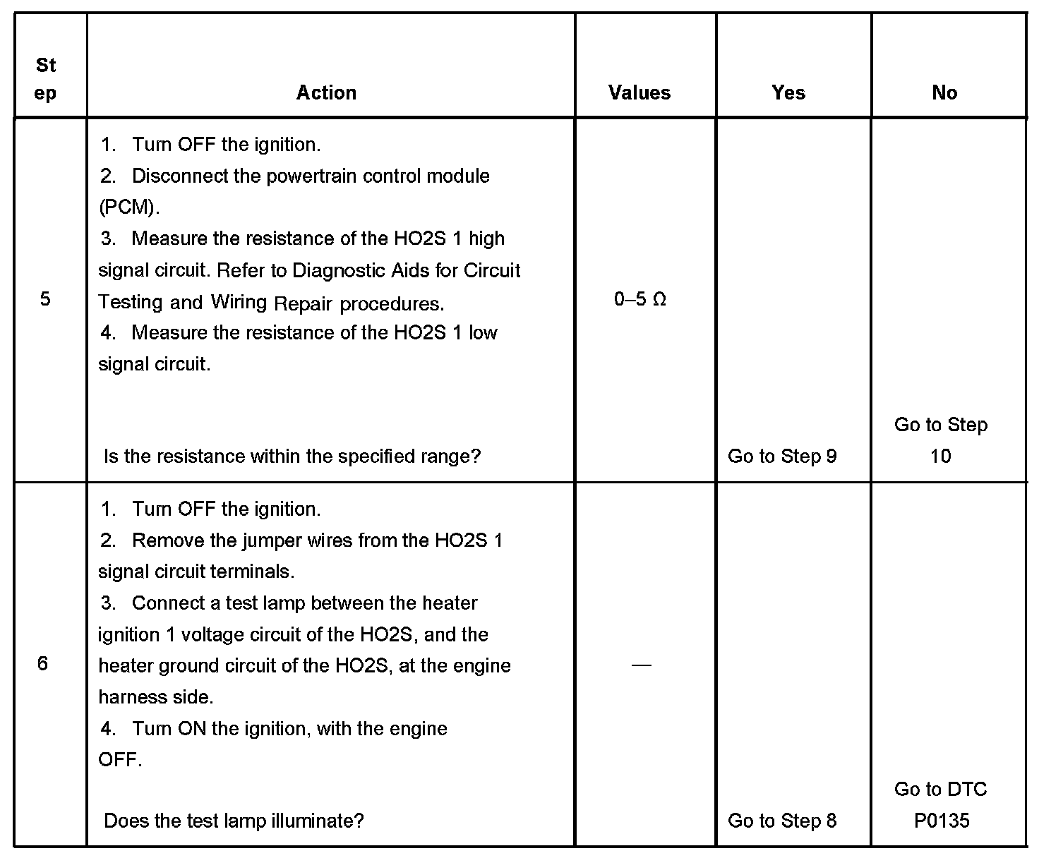 6. This step verifies that there are functional HO2S 1 heater power and ground circuits.