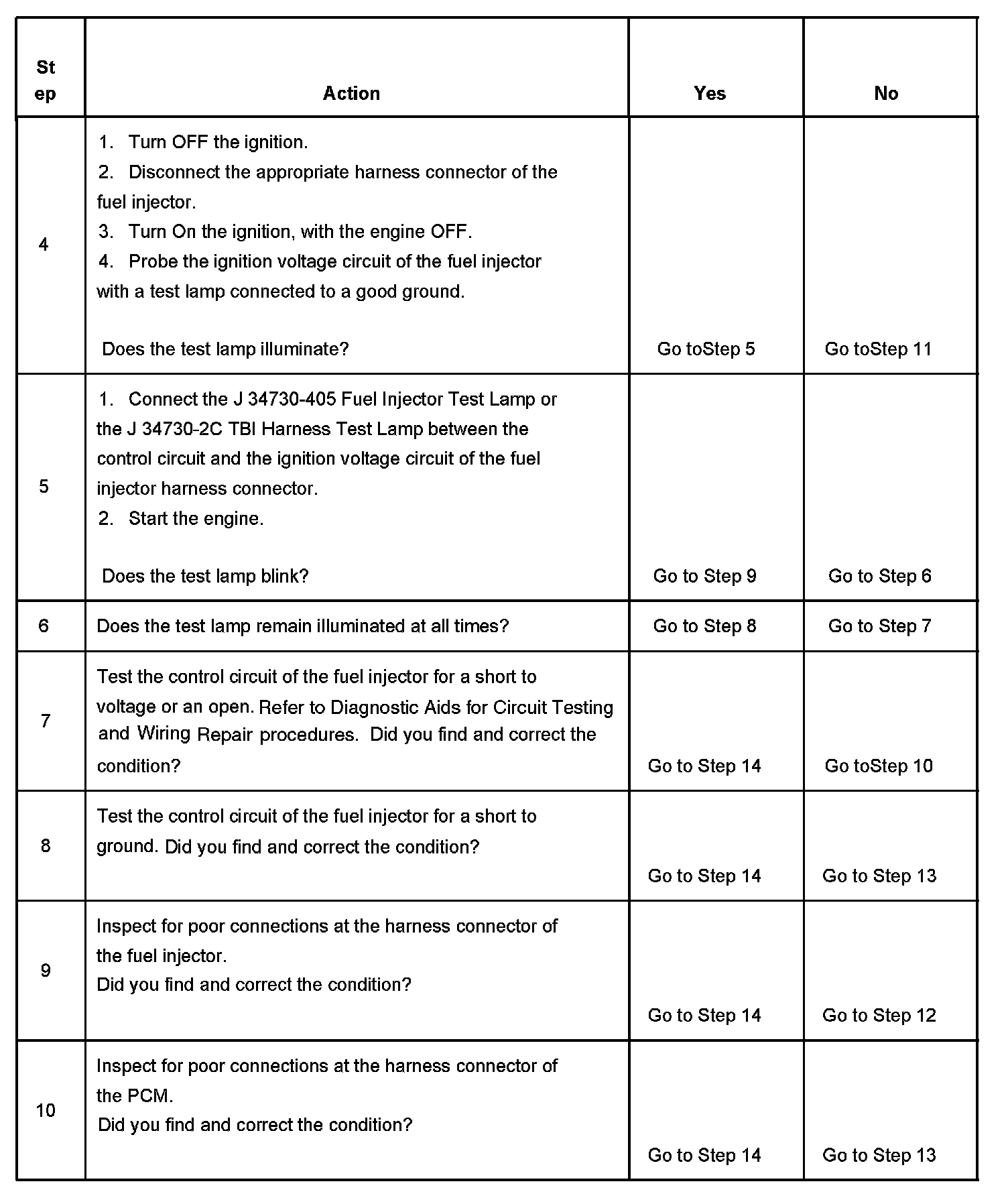 6. This step tests if a ground is constantly being applied to the fuel injector.
