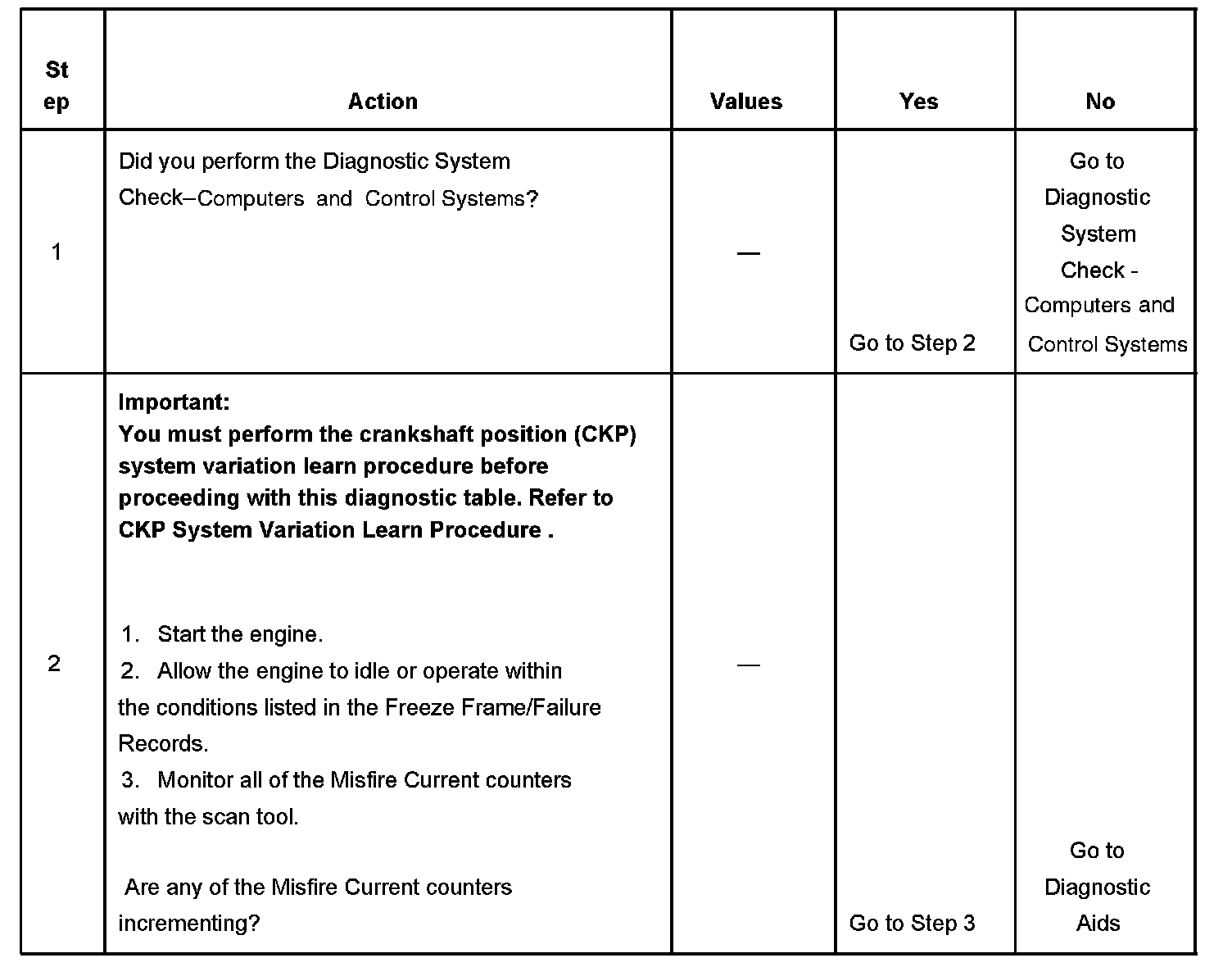 2. If the actual CKP variation values are not within the learned values, the misfire counters may increment.