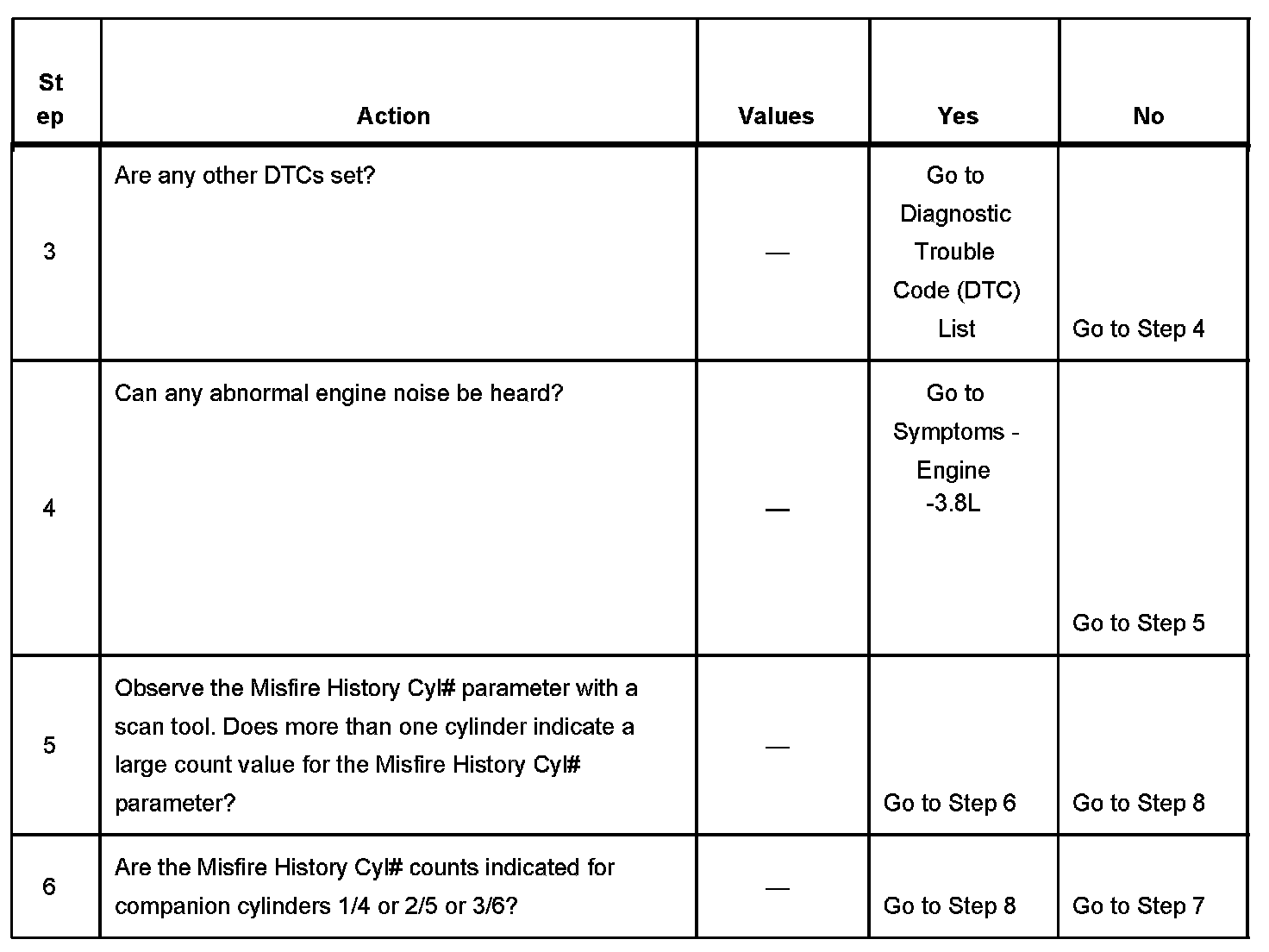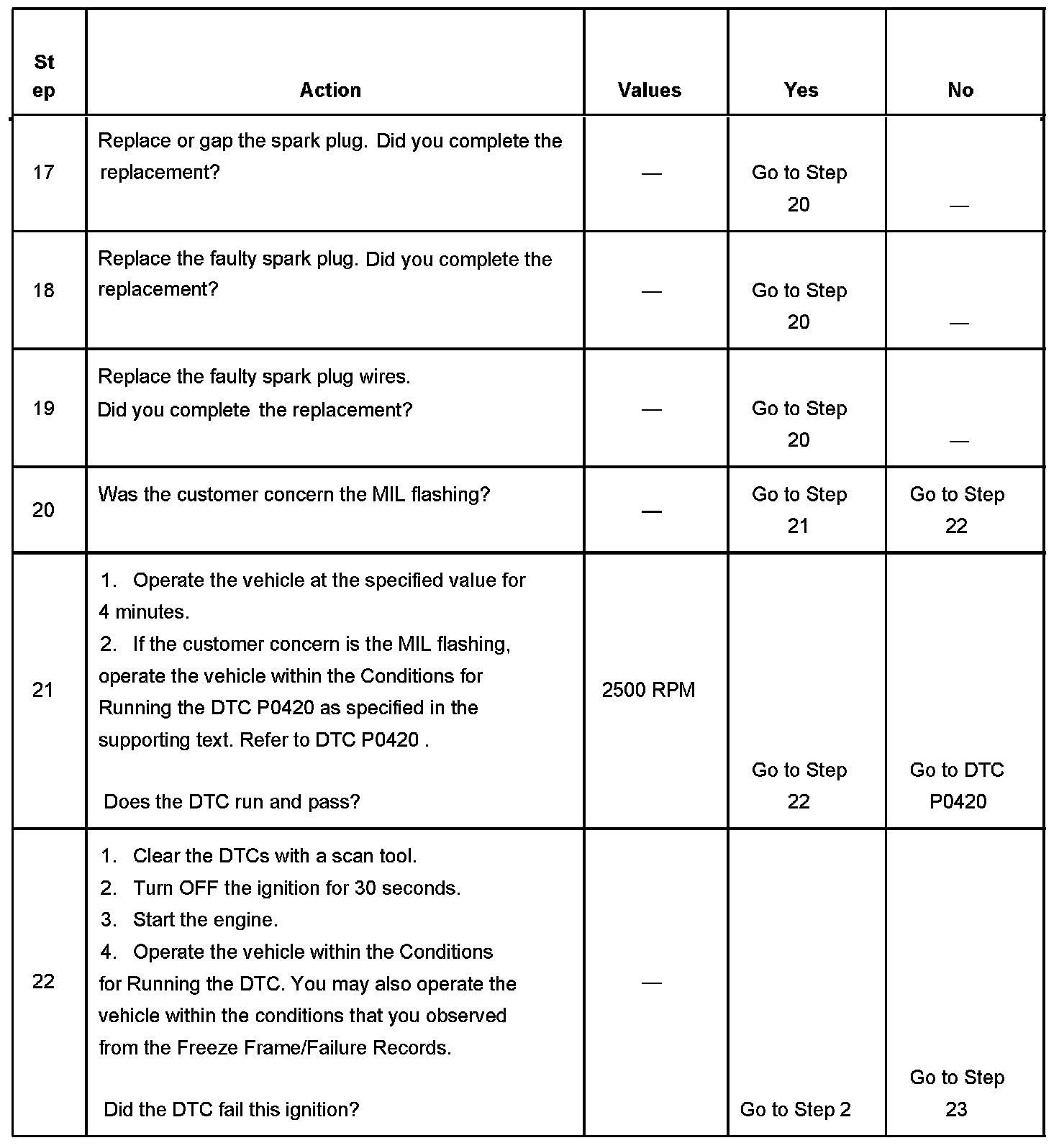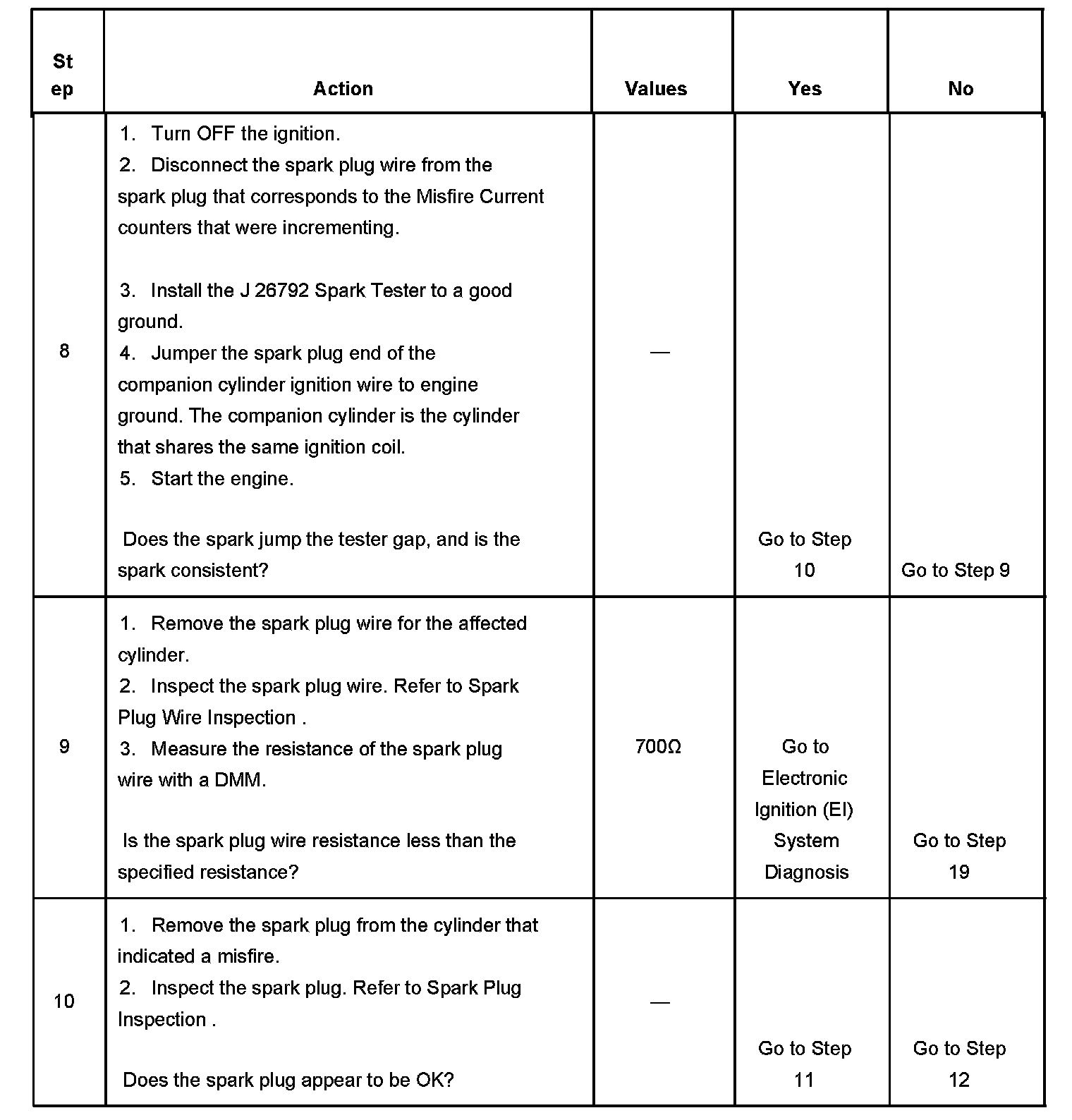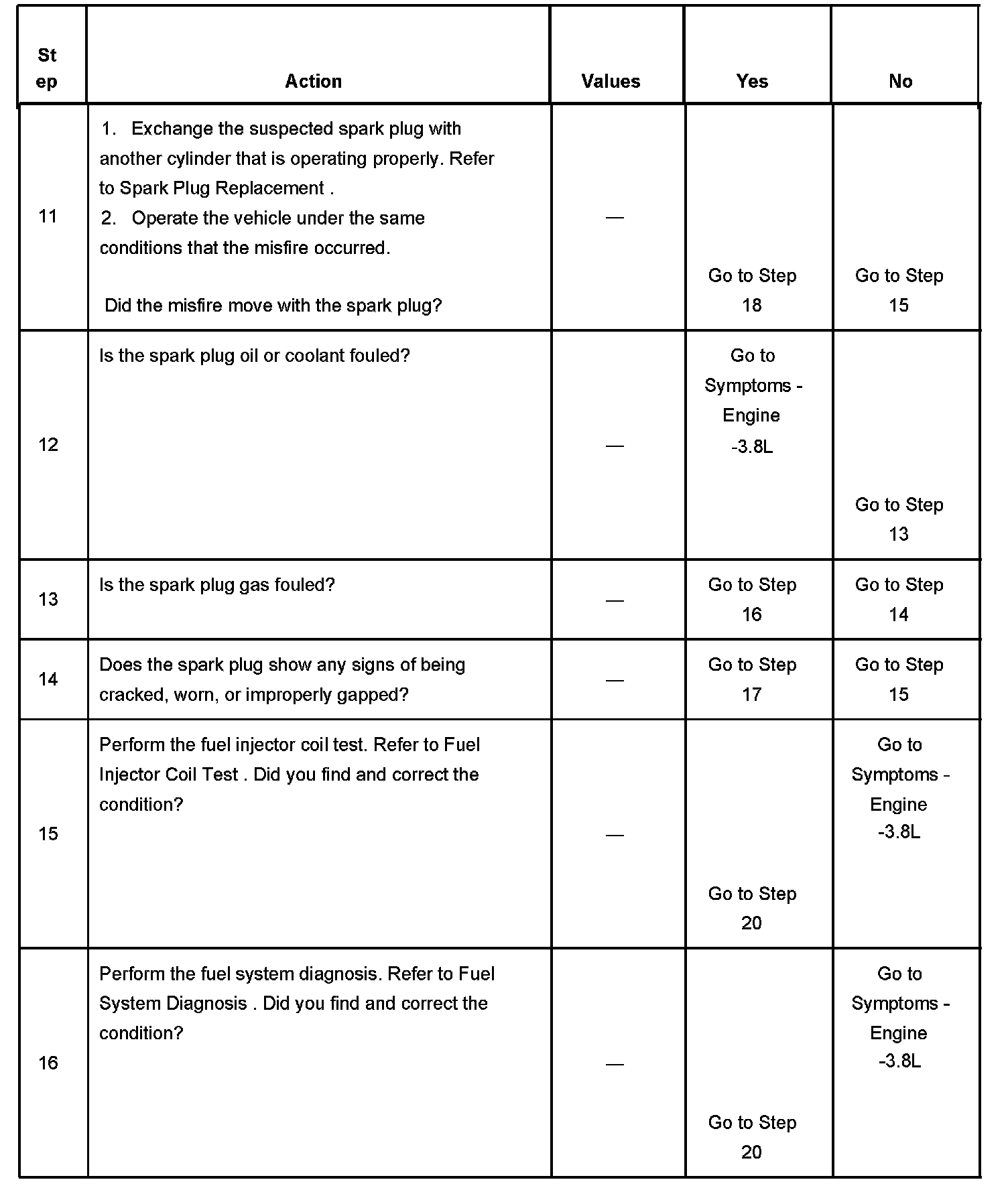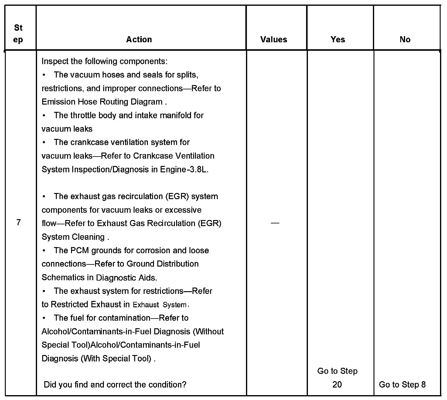 The number below refers to the step number on the diagnostic table.