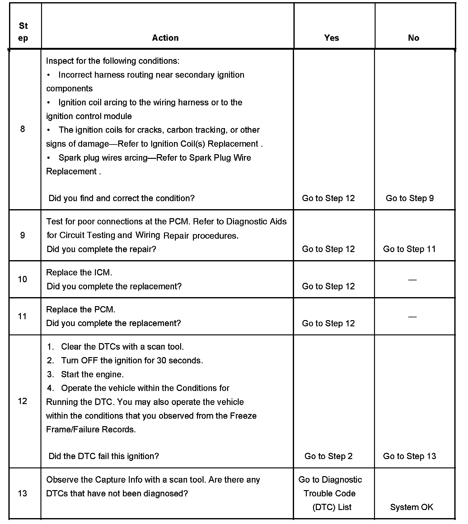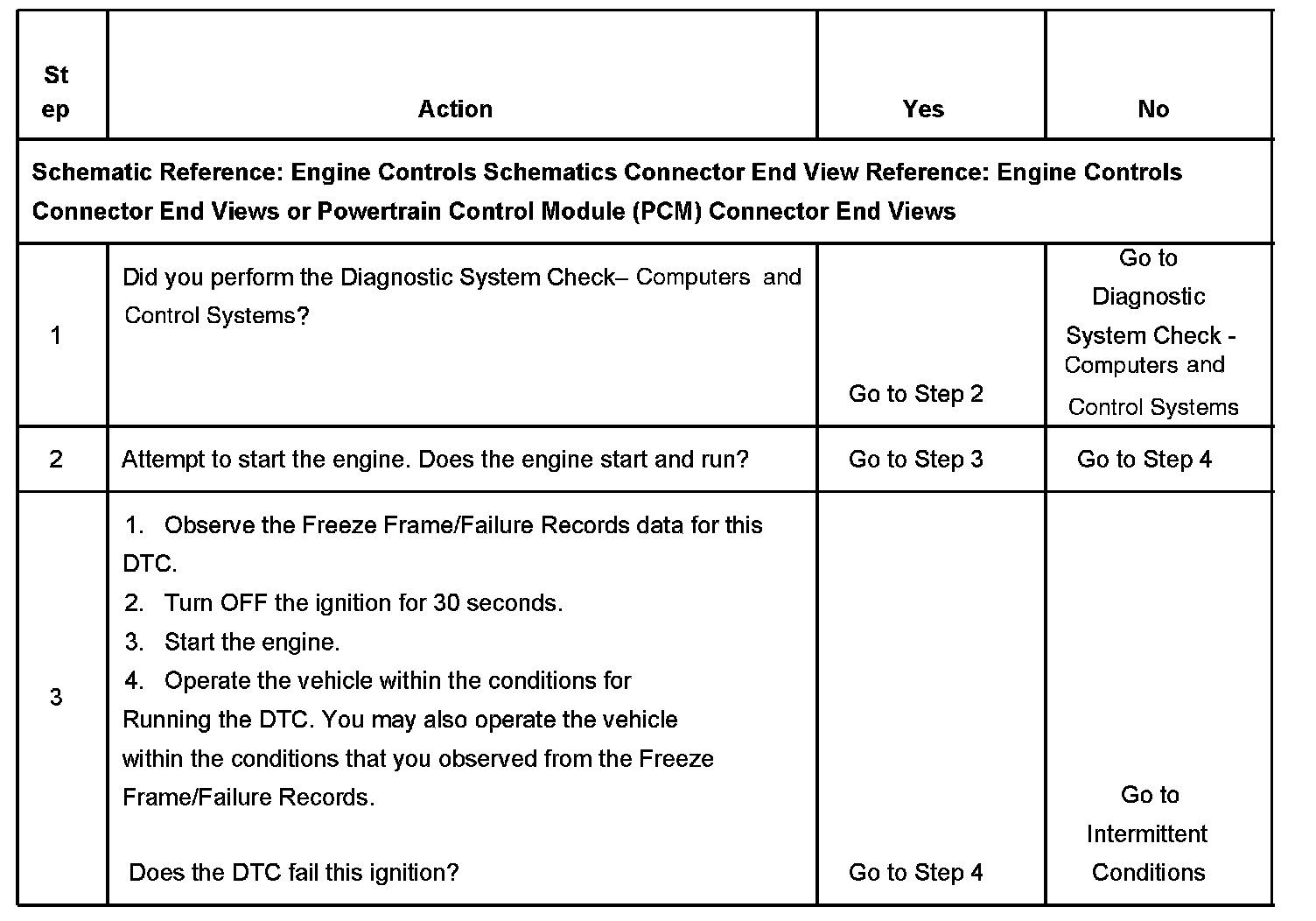 The numbers below refer to the step numbers on the diagnostic table.
