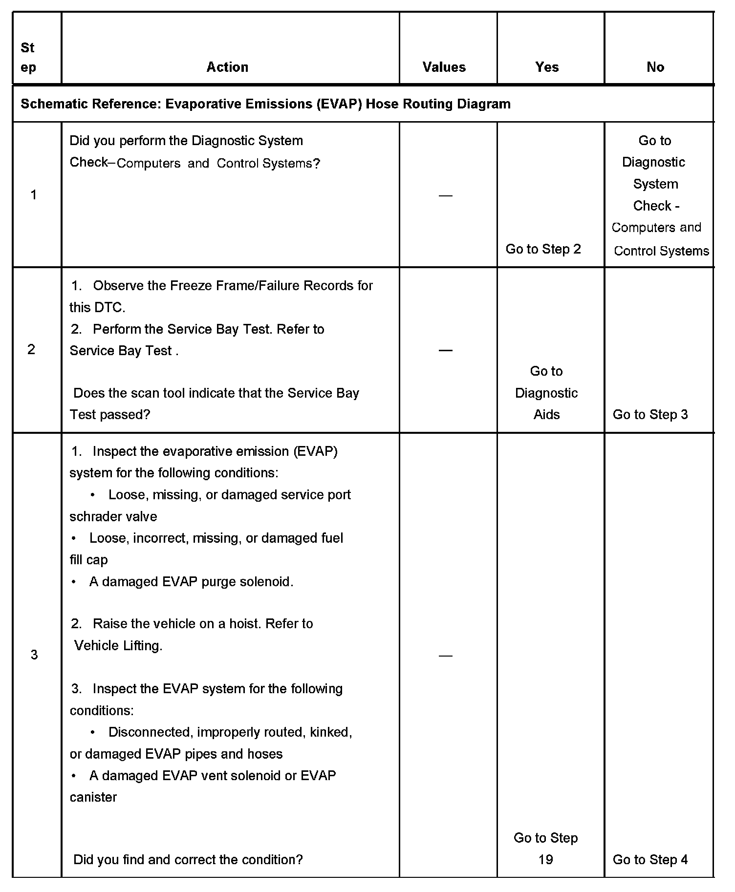 The numbers below refer to the step numbers on the diagnostic table.