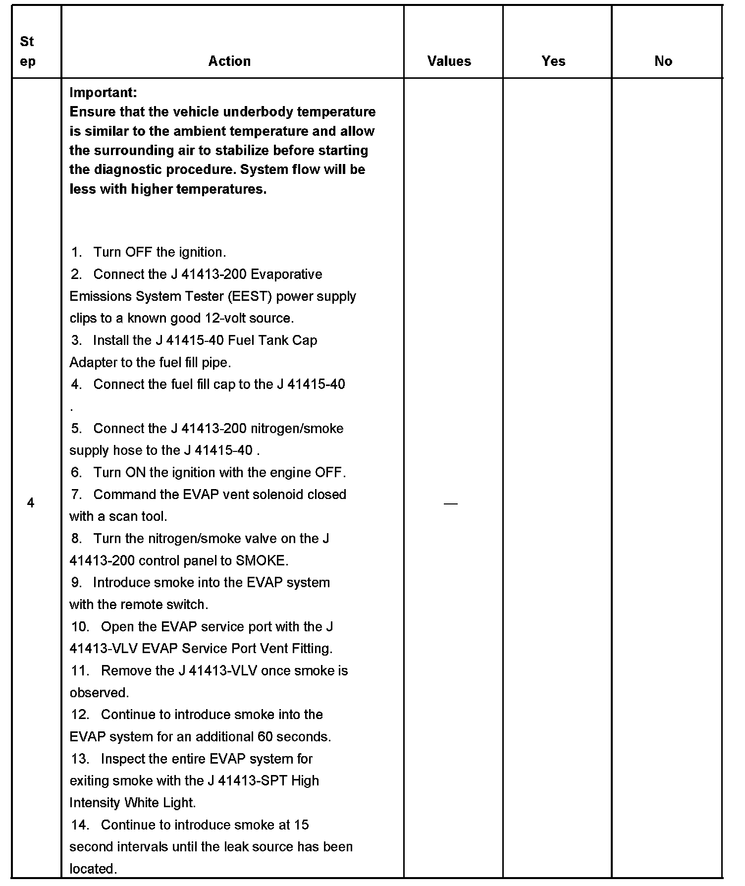 - To help locate intermittent leaks, use the J 41413-200 Evaporative Emissions System Tester (EEST) to introduce smoke into the EVAP system. Move all EVAP components while observing smoke with the J 41413-SPT High Intensity White Light.