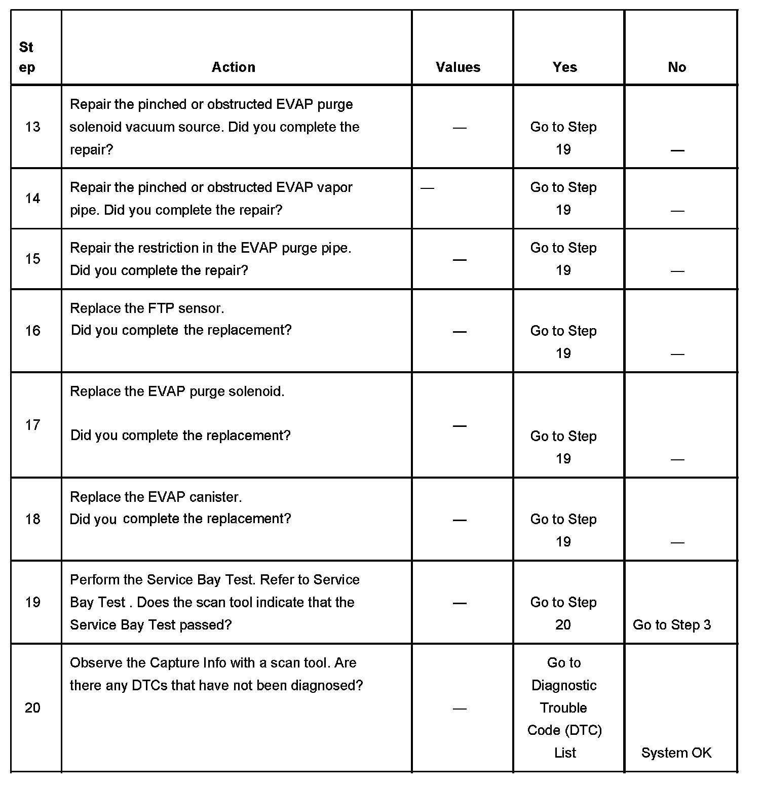 9. This step tests the EVAP purge solenoid vacuum source between the EVAP purge solenoid and the Intake manifold for restrictions or blockages.