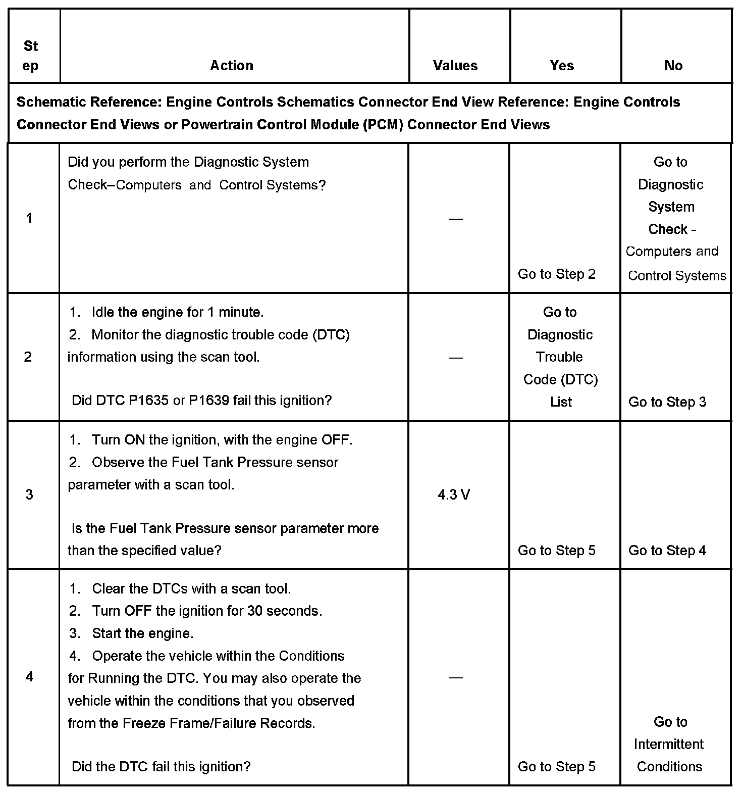 CIRCUIT DESCRIPTIONThe fuel tank pressure (FTP) sensor measures the difference between the air pressure or vacuum in the evaporative emission (EVAP) system, and the outside air pressure. The control module supplies a 5-volt reference and a low reference circuit to the FTP sensor. The FTP sensor signal circuit voltage varies depending on EVAP system pressure or vacuum. If the FTP sensor signal voltage increases above a calibrated value, this DTC sets.