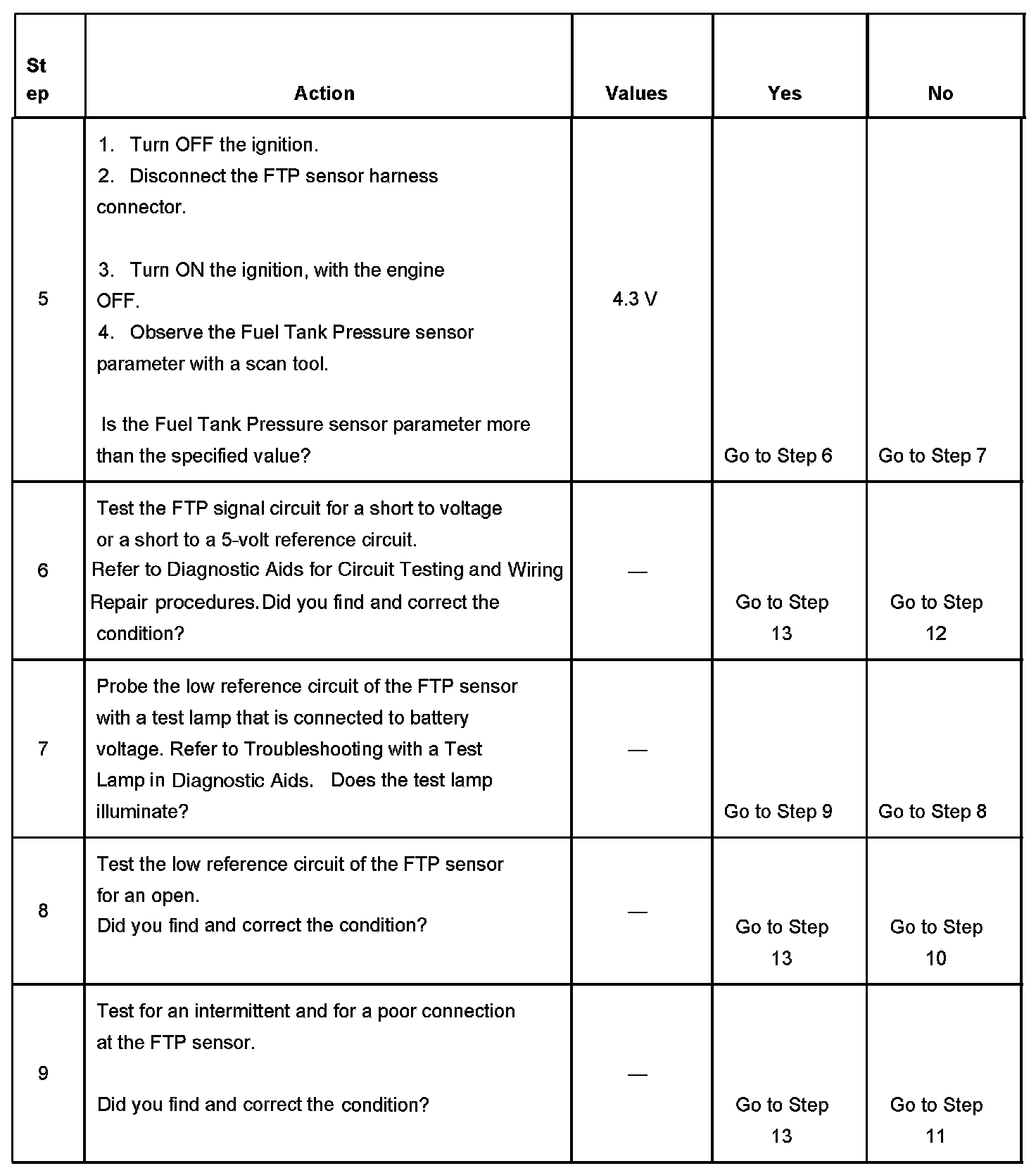 - The FTP sensor voltage is more than 4.9 volts.