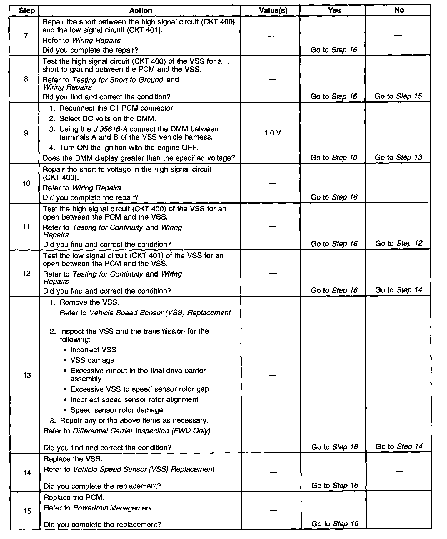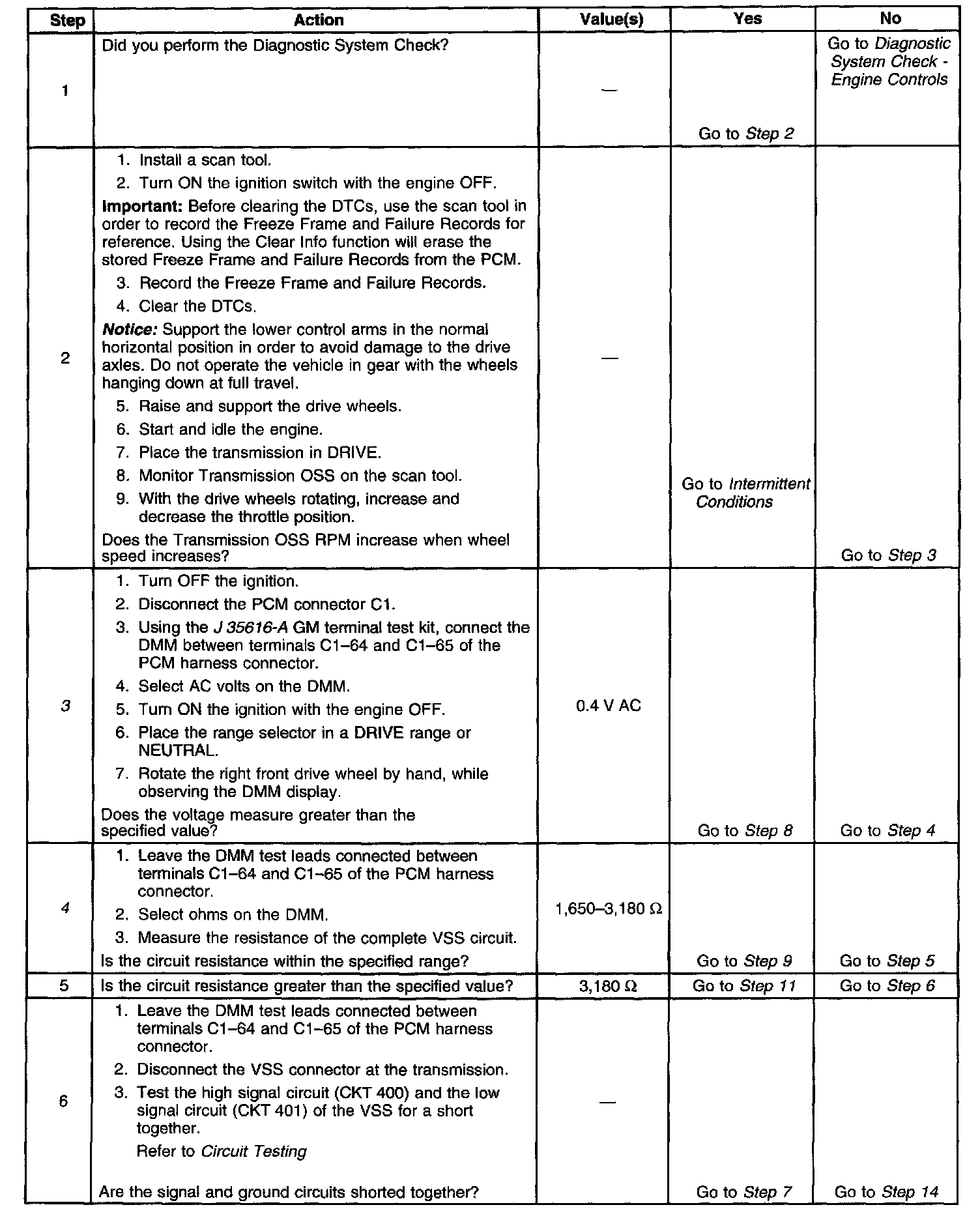 3. This step tests the ability of the VSS to produce an AC voltage. This step also verifies the integrity of the wiring to the PCM.