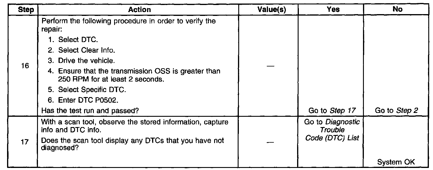 If the PCM detects a low vehicle speed with a high engine speed while in a drive range, then DTC P0502 sets. DTC P0502is a type B DTC.
