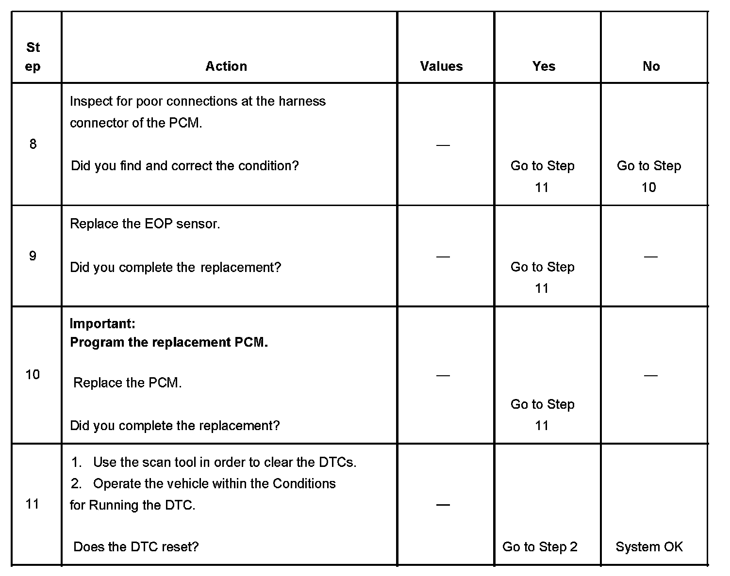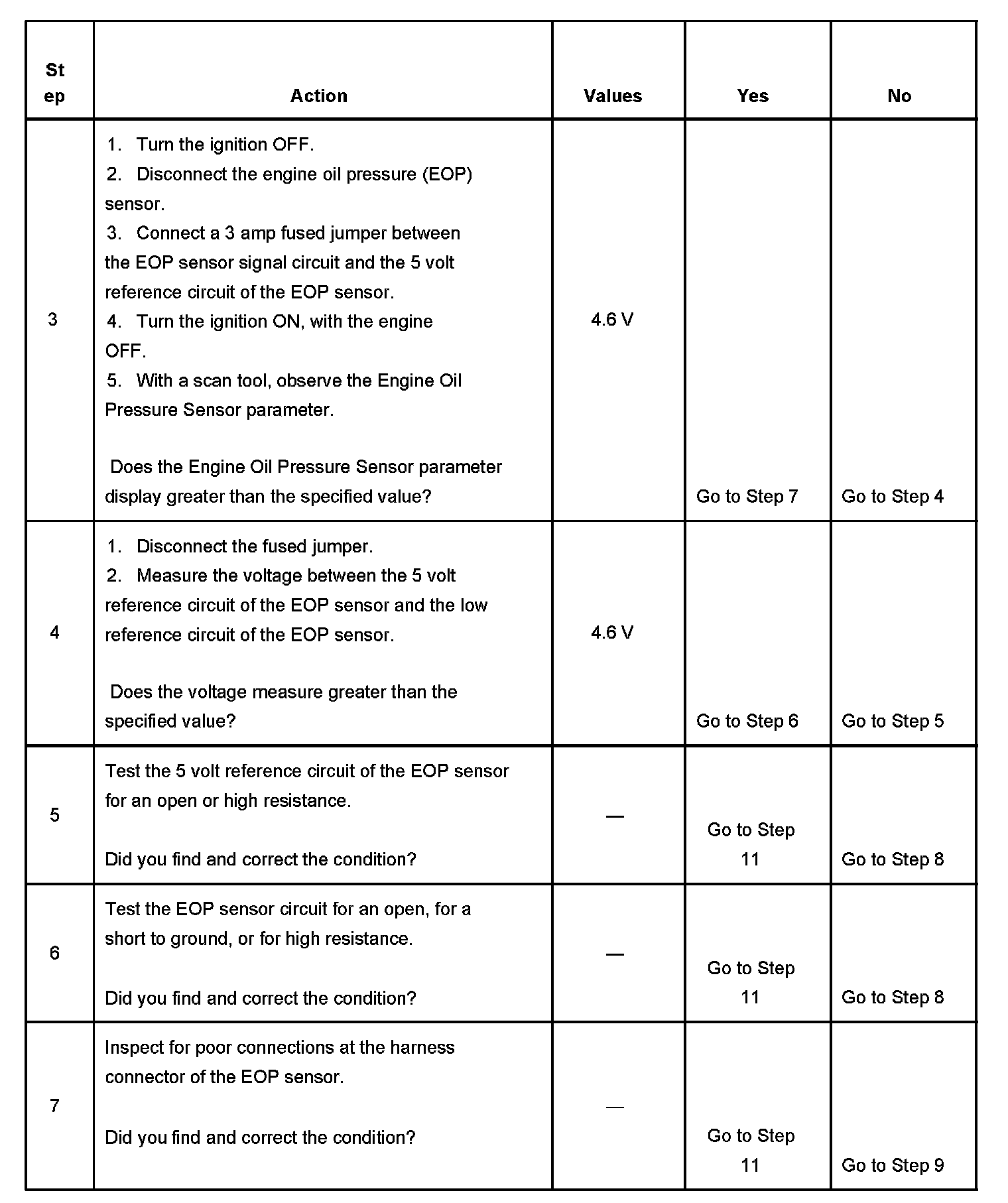 - The PCM detects that the EOP sensor signal circuit is less than 0.4 volts.