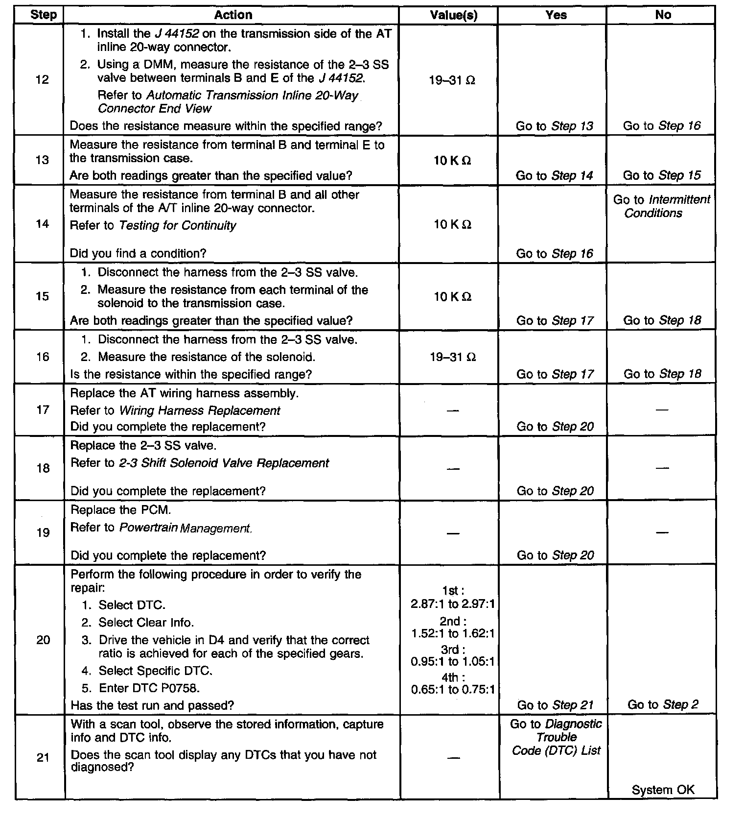 If the PCM detects a continuous open, short to ground or short to power in the 2-3 SS valve circuit, then DTC P0758 sets. DTC P0758 is a type A DTC.