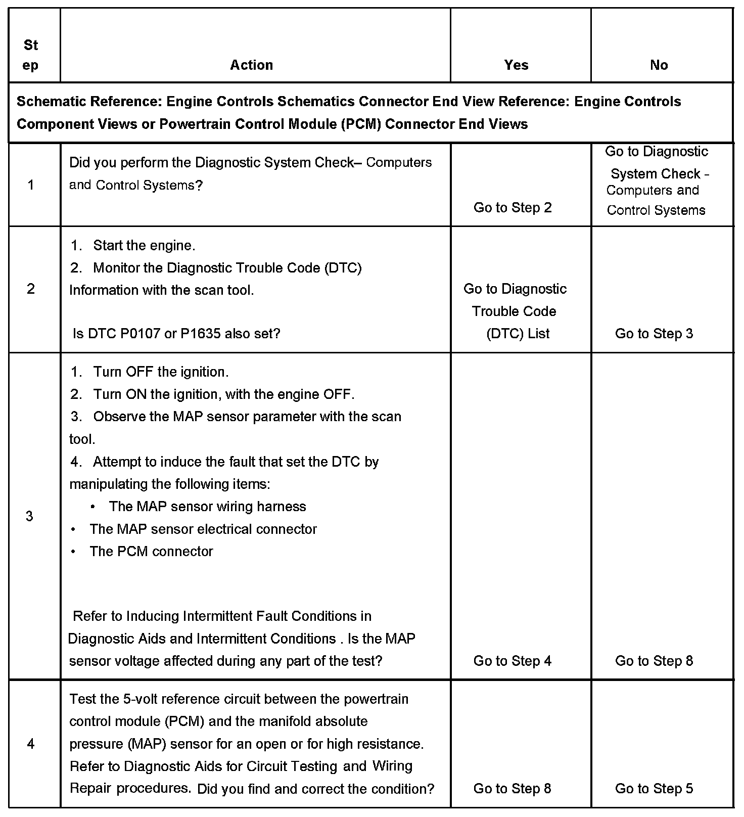 If the PCM detects a MAP sensor signal voltage that is intermittently low, DTC P1107 sets.