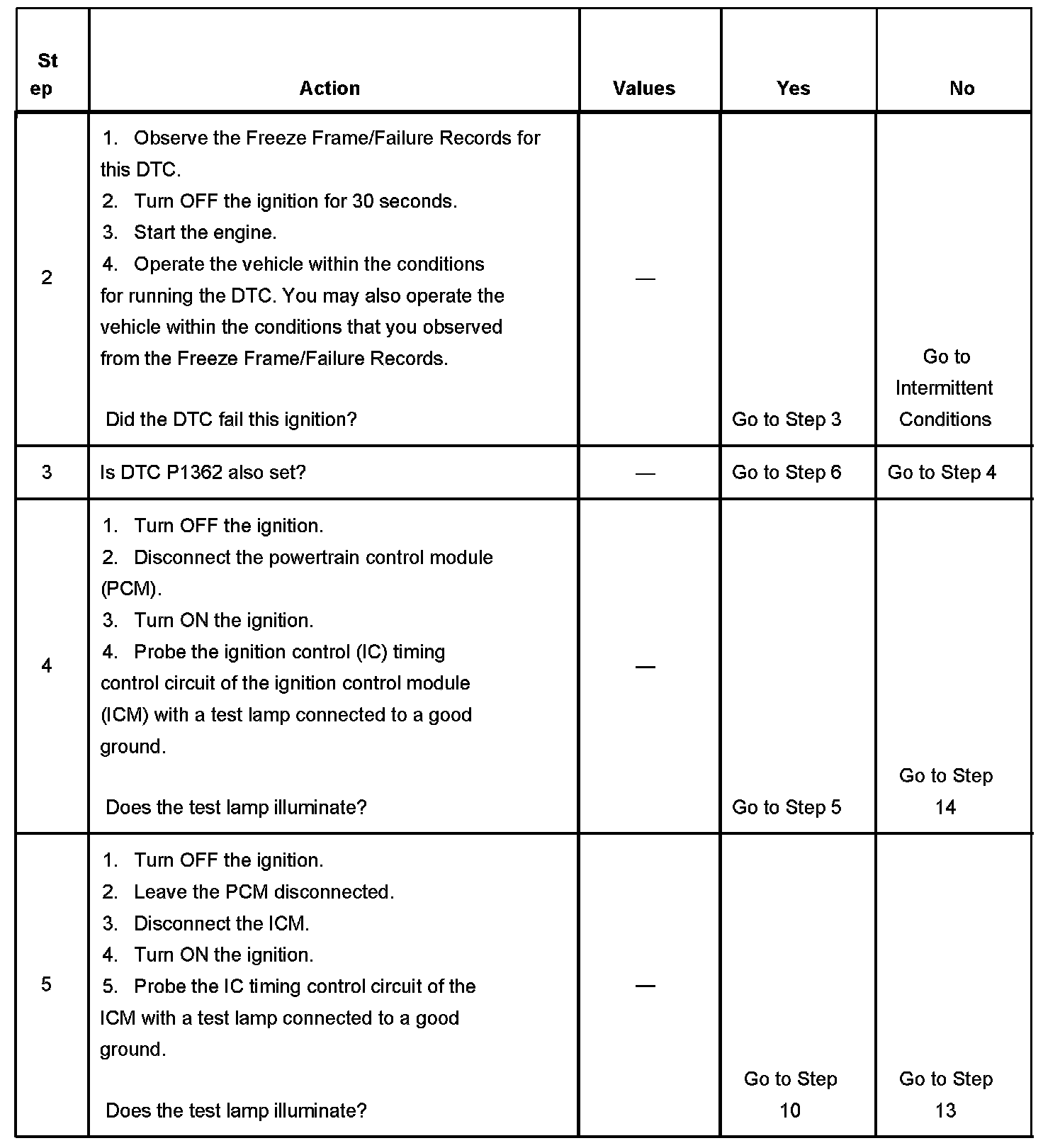 If the PCM does not detect IC pulses while IC mode spark advance is commanded, DTC P1361 sets.