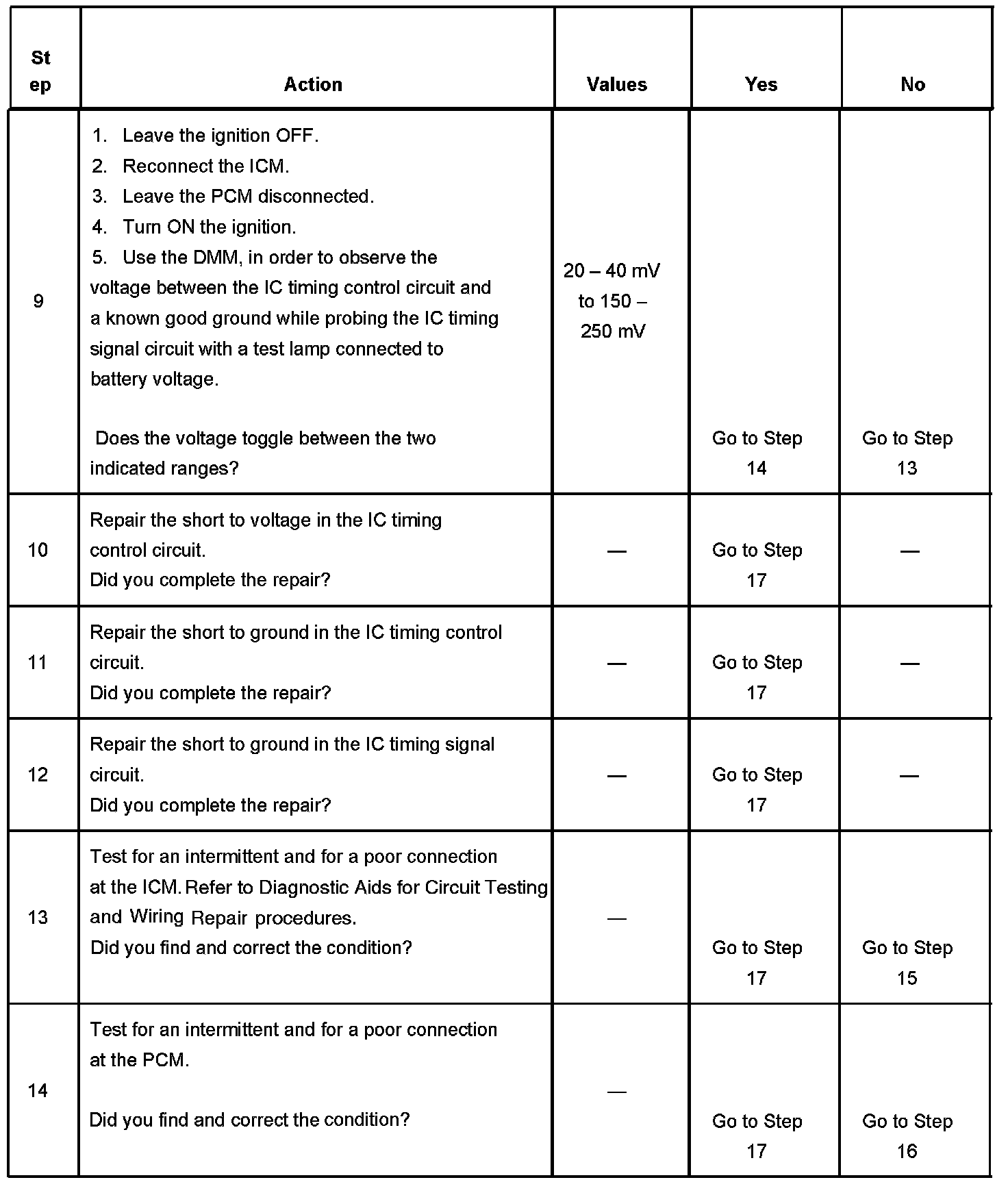 The PCM does not detect IC pulses while IC mode spark advance is commanded.