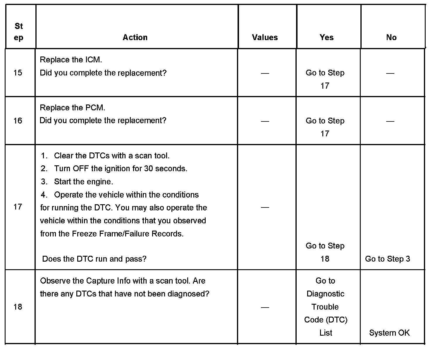 - A current DTC, Last Test Failed, clears when the diagnostic runs and passes.